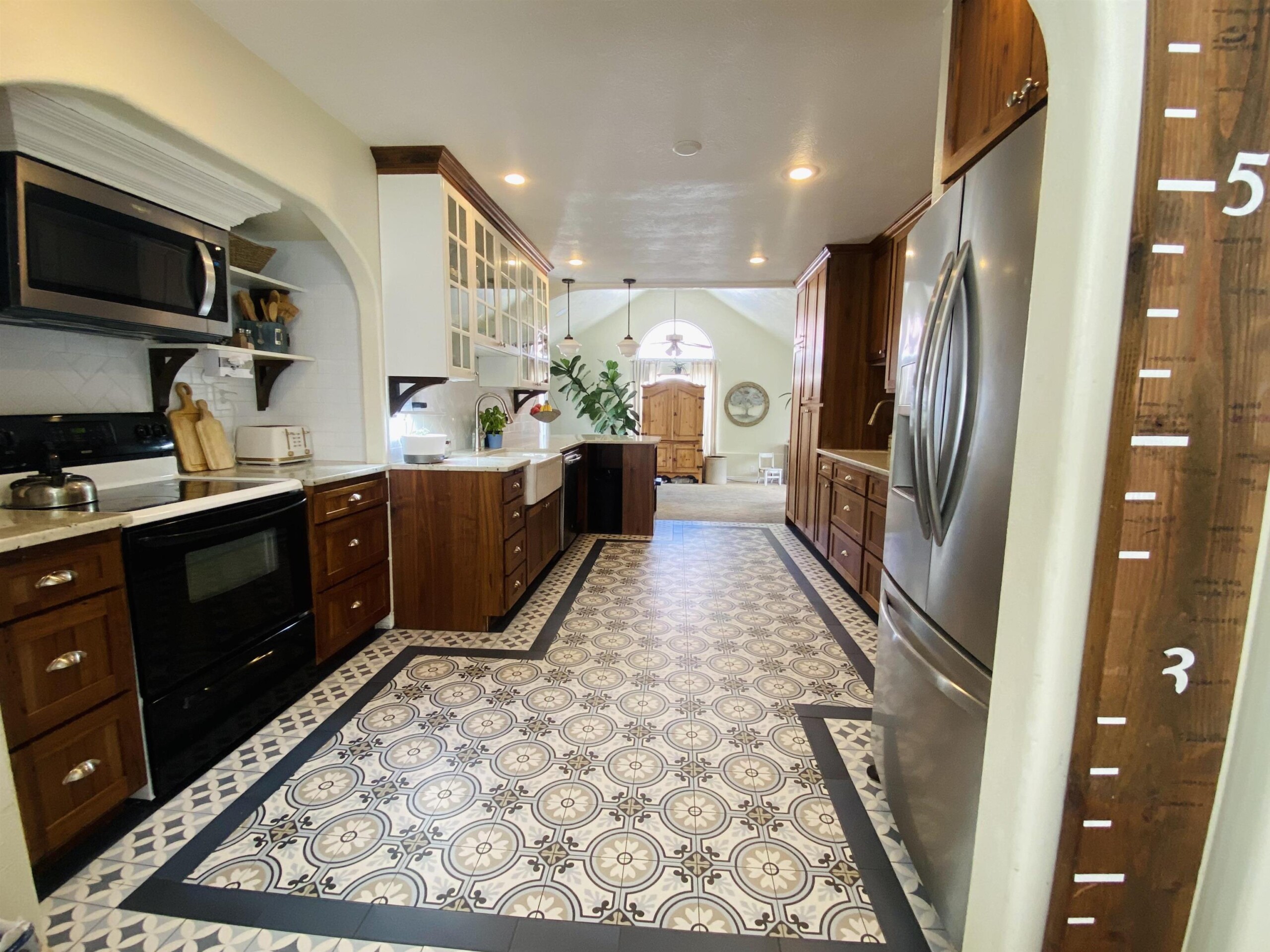 Welcome to this charming 4 bed, 3 bath cottage-style home that perfectly blends classic character with thoughtful modern updates. From the moment you arrive, you will fall in love with the English garden landscaping and storybook appeal. Inside, warm hardwood floors guide you through generous living spaces filled with lots of natural light and timeless touches like graceful archways and a cozy reading nook. The heart of the home is the stunning custom walnut kitchen, featuring two sinks, elegant finishes, and plenty of space to gather. Each bedroom is impressively sized, while the master suite provides a tranquil retreat with its own unique design and private balcony. You’ll love the updated plumbing and electrical systems, along with newly added mini split for the master suite. The incredible mud room offers functionality without sacrificing style. Outside, enjoy the fruit trees, raised garden beds, chicken coop, and a spacious 2-car garage/shop perfect for hobbies or storage. This home has tons of living space and charm to spareâan ideal blend of elegance, beauty, comfort, and practicality. Donât miss your chance to own this one-of-a-kind gem!