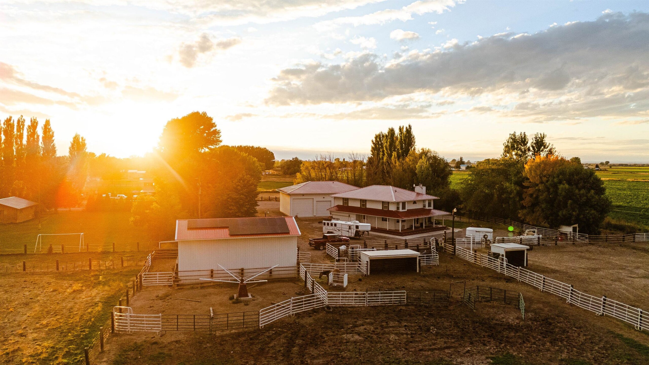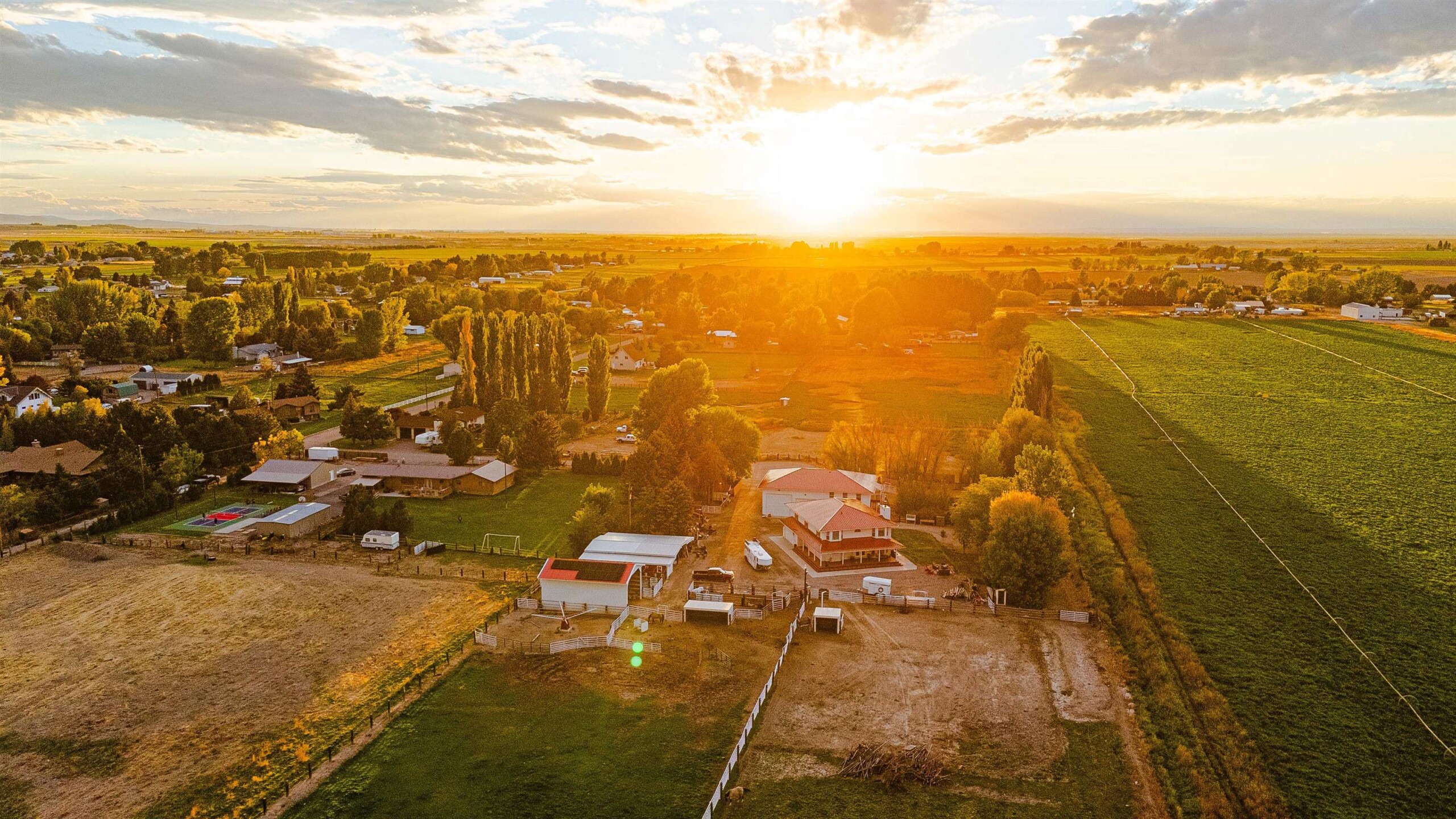 Country lovers, welcome to your dream property! This one-of-a-kind estate is nestled at the end of a cul-de-sac and offers the perfect balance of space and flexibility, with convenient access to town- sitting on 4.25 acres. The expansive main home offers over 4,500 sq ft of thoughtfully designed living space featuring 6 bedrooms, 3 full bathrooms & an inviting wrap around porch. Steps away is the 2,688 sq ft shop/apartment. The shop is heated & insulated with a shop bathroom, 20′ semi/ RV pass-through doors, extra-thick concrete/ preventative fiberglass floors for heavy-duty durability & a car lift that stays! Apartment above the shop is 1,344 sq ft- 3 bedrooms/ 1 bathroom and is complete with its own laundry room, 2 entrances and a balcony to overlook the property. It would make a great guest house, rental unit, or private retreat. Underneath the apartment is a 4-car garage currently being used as an oversized tack room. Irrigation is provided by Fort Hall (5 water shares)- est. $300/ year. Notable features include a metal roof, new furnace and AC units (2022), a hay barn, 2 loafing sheds, septic main replaced (2025), upgraded electrical panels with room for additions, radon mitigation system, solar panel system, a sump pump in basement, and spectacular unobstructed view over the pastures. Whether you’re looking for income-producing possibilities, a self-sufficient homestead, a spacious workshop, room for all of the animals or simply a tranquil escape with room to breathe- this property offers it all!