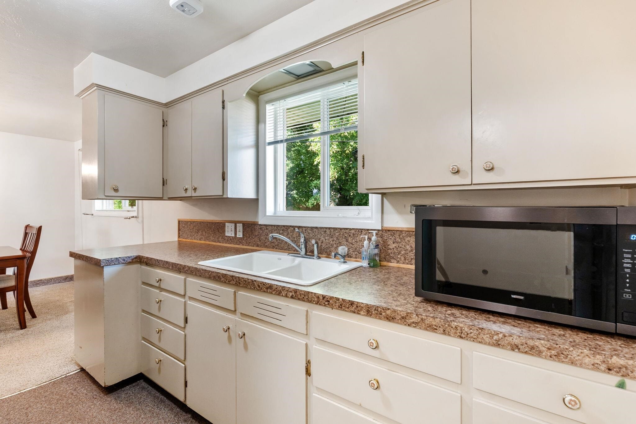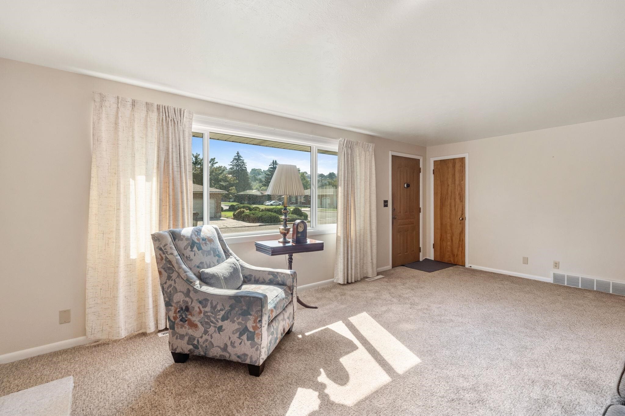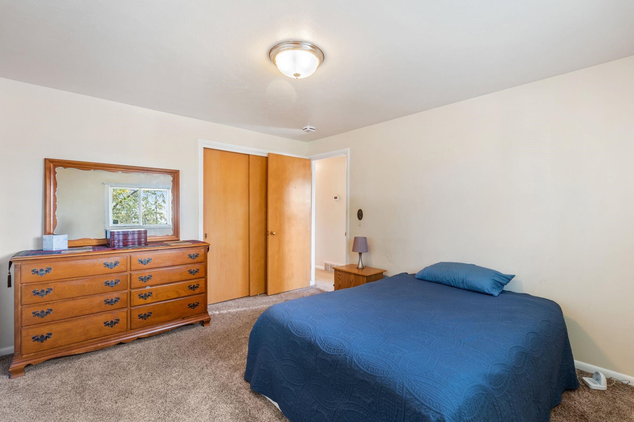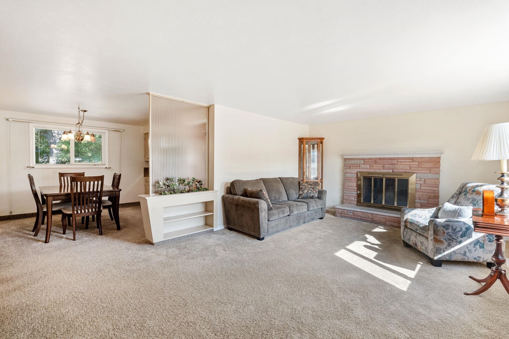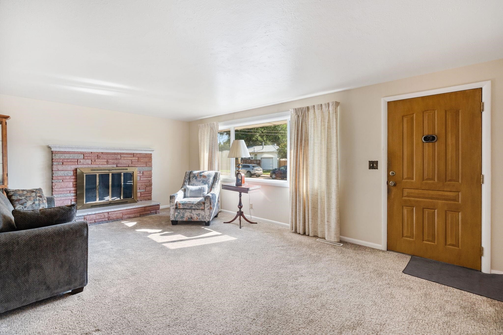 Solid brick home centrally located near, shopping and elementary school. Well maintained home has newer carpet upstairs with hardwood floors under in some of the main floor. Vinyl windows, maintenance free exterior, fully fenced back yard, 2 car garage with room for work benches. Inside you will find lots of light, a large living room, two open hearth fireplaces, a total of five bedrooms, 2 completely remodeled bathrooms with walk in showers. Gas heat, central air and more!