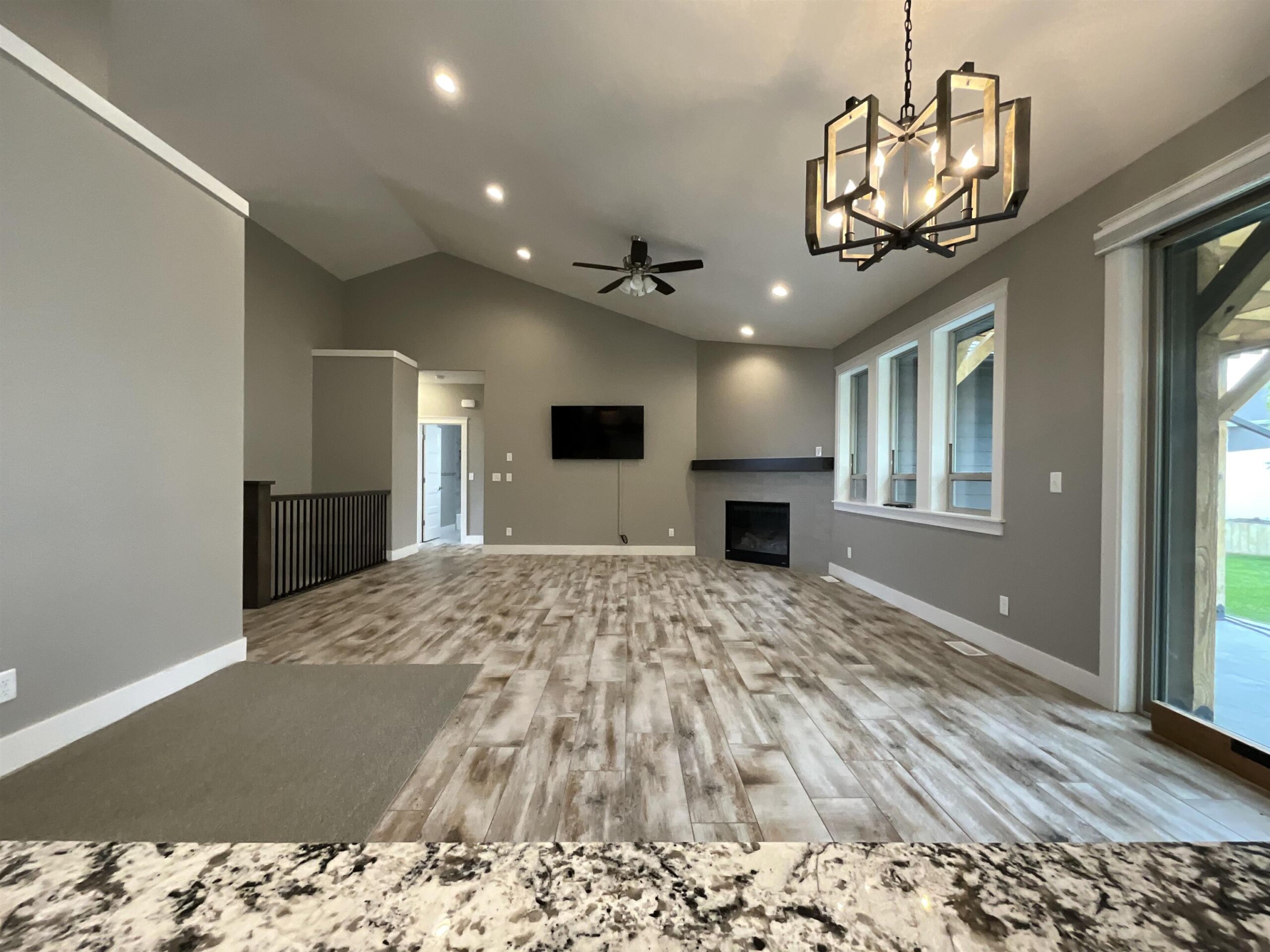 Desired South Pocatello area home/property. Newer construction in excellent condition including higher end landscape finish. Located on sought after South bench with privacy as well as Valleyviewâs from covered porch. Open floor plan within this ranch basement offering the ability to entertain in the great room and flow to the covered deck. Finish includes granite throughout, higher end trim work and oversized rooms for a wide open feel with modern color schemes and design. Basement is partial finish with ability for 2 more bedrooms plus a bathroom that already has tub and toilet set plus utility and storage rooms on top of what can still be finished. Landscape is fully fenced with new vinyl fencing and terraced with separate garden areas. Large concrete pad gated and created for RV/large toys to be secure. Established yard and trees make this property feel like a private park. Must see South Pocatello property.