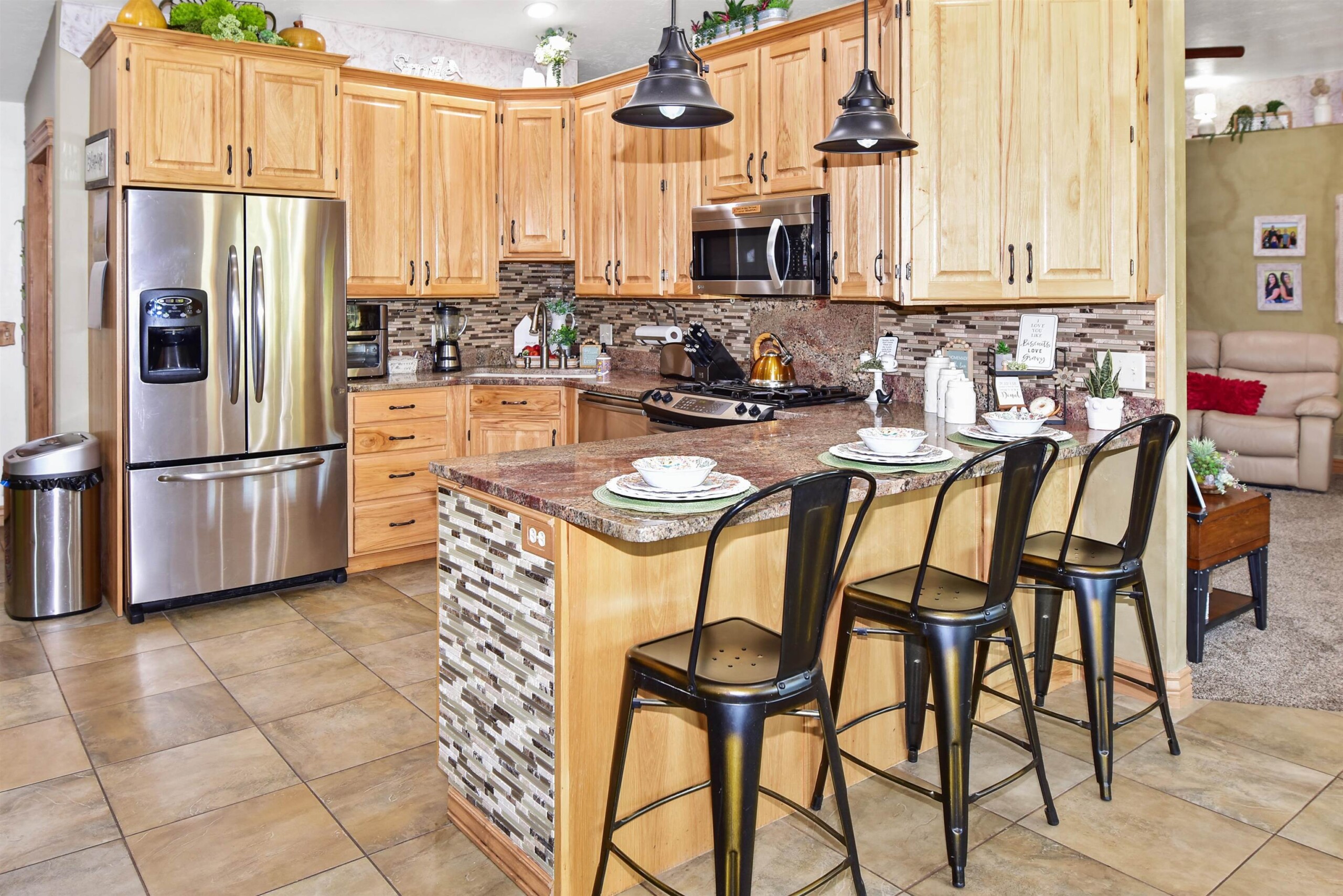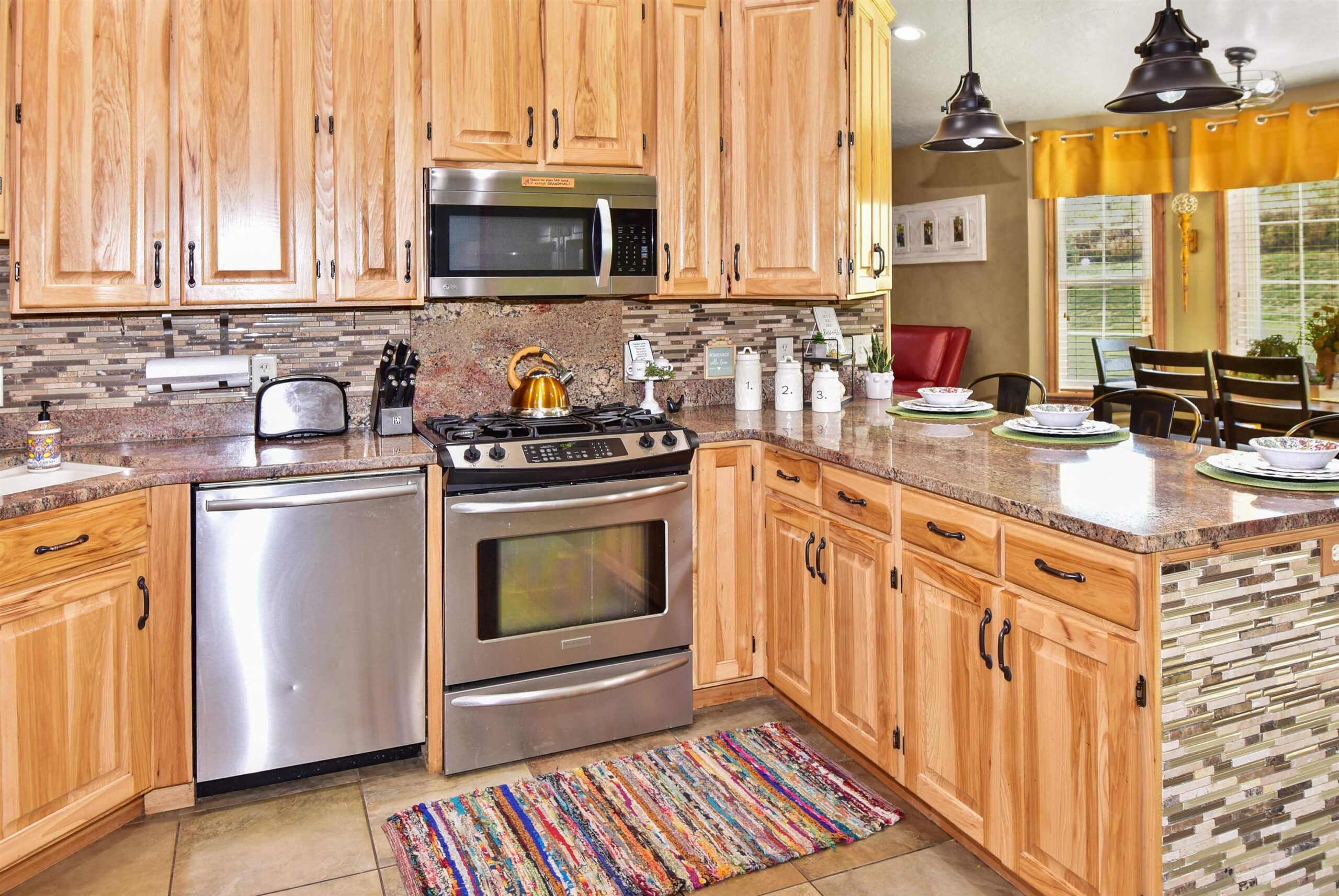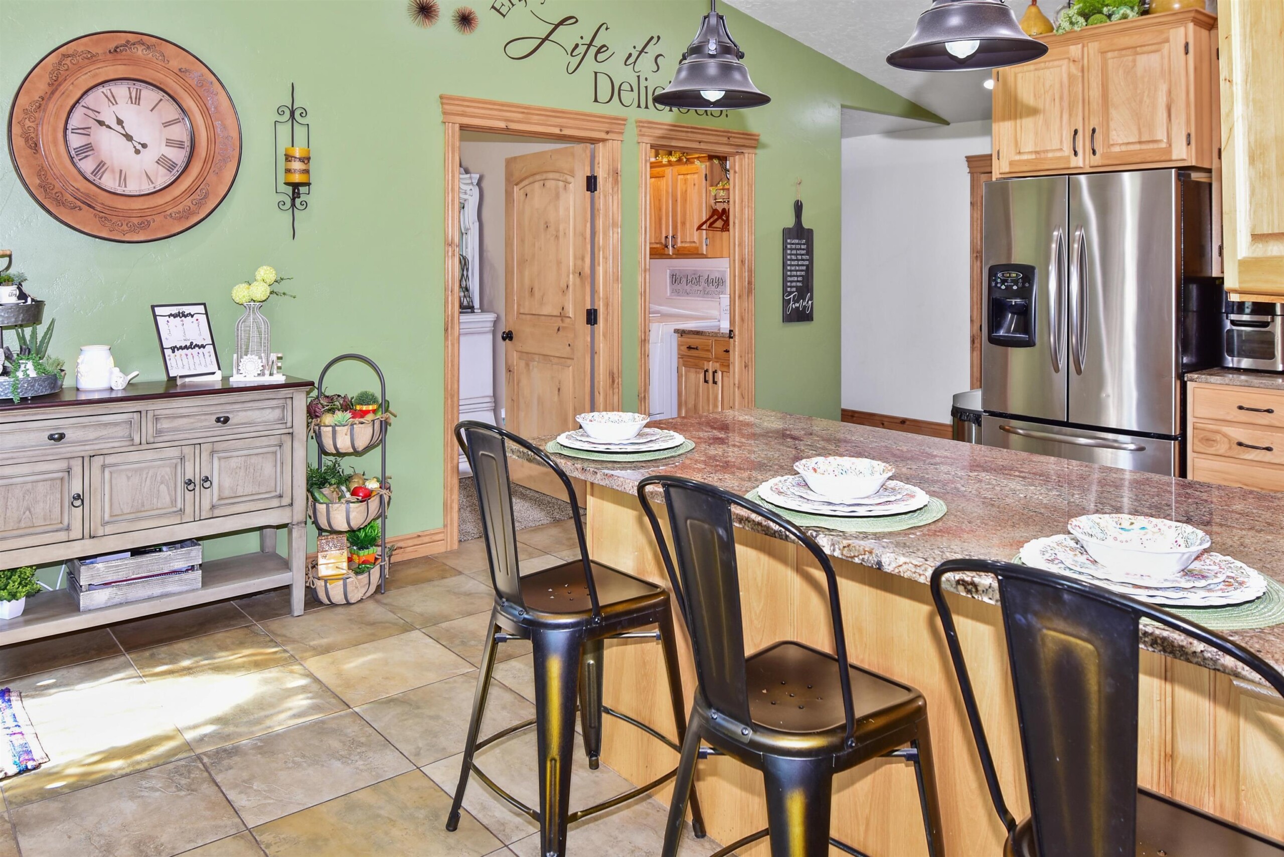 This beautiful custom home nestled in a picturesque country setting is waiting for you. Featuring over 3,700 sq ft with 6 bedrooms, 3.5 bathrooms and situated on approximately 11 acres. Inside you’ll find a spacious living room and fire place. Gorgeous kitchen with custom cabinets, granite countertops, stainless steel appliances, and a walk-in pantry. The large master bedroom suite features a walk-in closet and a master bathroom with marble shower, corner jetted tub, tile floors, and granite countertops. The custom alder wood trim, molding, and doors add to the beauty of this home. Two additional bedrooms and a bathroom round out the main floor. Venture downstairs into the open family room with fantastic natural light, built in cabinetry, and a fire place. Three bedrooms downstairs including a large bedroom with four custom built-in bunk beds. Outside features a 40’x50′ heated shop, including a built in pit for vehicle repair and maintenance. Behind the shop is a large Conex container for additional storage. Beautiful mature lawn and landscaping with underground sprinkler system and patio.