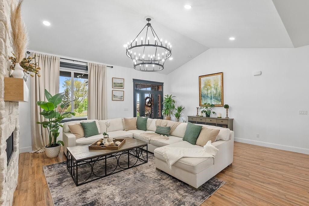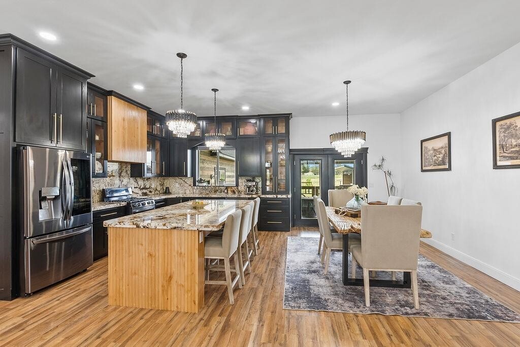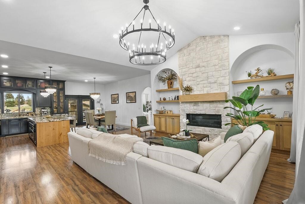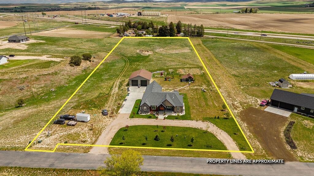 A rare opportunity to own a truly luxurious, custom-designed estate on 5 pristine acres in American Falls â where modern elegance meets timeless sophistication. Every inch of this 5,126 sq ft residence was crafted with the highest attention to detail and filled with upscale finishes that rival any luxury home on the market. From the moment you enter, you’re greeted by soaring 10 ft and vaulted ceilings, elegant arched doorways, and rich textures â including white oak built-ins, LVP flooring, and designer tilework throughout. The chefâs kitchen is a showstopper: custom black alder cabinetry with brushed gold hardware, double granite countertops, a gas stove with custom hood, pot filler, and walk-in pantry with built-in microwave â all designed for both beauty and function. Unwind in the lavish primary suite with a coffered ceiling, spa-like bath featuring leathered granite, a freestanding soaking tub, arched floor-to-ceiling tiled shower, private toilet room, and an opulent walk-in closet crowned with a chandelier. Every space in this home radiates luxury â from the remote-control blinds and custom lighting to the powder room’s statement tile and the large laundry with double granite, sink, and folding station. The basement is framed for three spacious bedrooms, a guest bathroom, and a large rec space. The space is plumbed for a wet bar and a fireplace. Sheet rock is currently being installed. The exterior is just as exceptional. The hand stained oak siding immediately draws the eye as you pull up to the home. a large covered deck for entertaining, heated chicken coop, and a beautifully finished 50×40 insulated shop with 14-ft doors, drywall, and 220V wiring add to the exterior appeal. Thereâs also a stylish finished tiny house/she shed with shiplap walls and charming garden space. Equipped with top-tier systems including on-demand hot water, triple water filtration, gas furnace, A/C, sump pump, and gas connections for BBQ and shop heat. The fully insulated and heated 3-car garage and in-progress landscaping with sprinkler setup complete the package. The extravagance of this home extends past the cosmetics. No expense was spared in this architectural gem â a rare blend of comfort, design, and indulgent luxurious living. Schedule your private showing to experience the opulence firsthand.