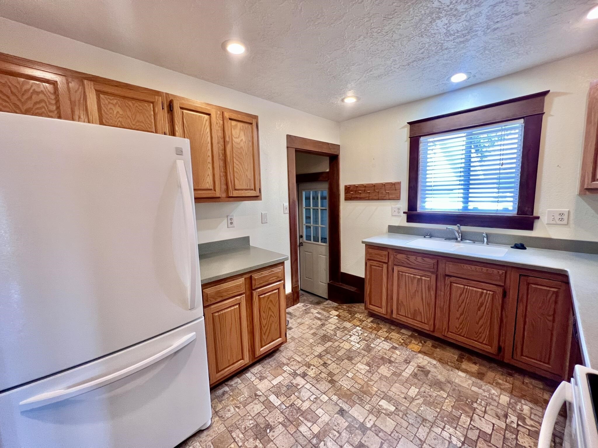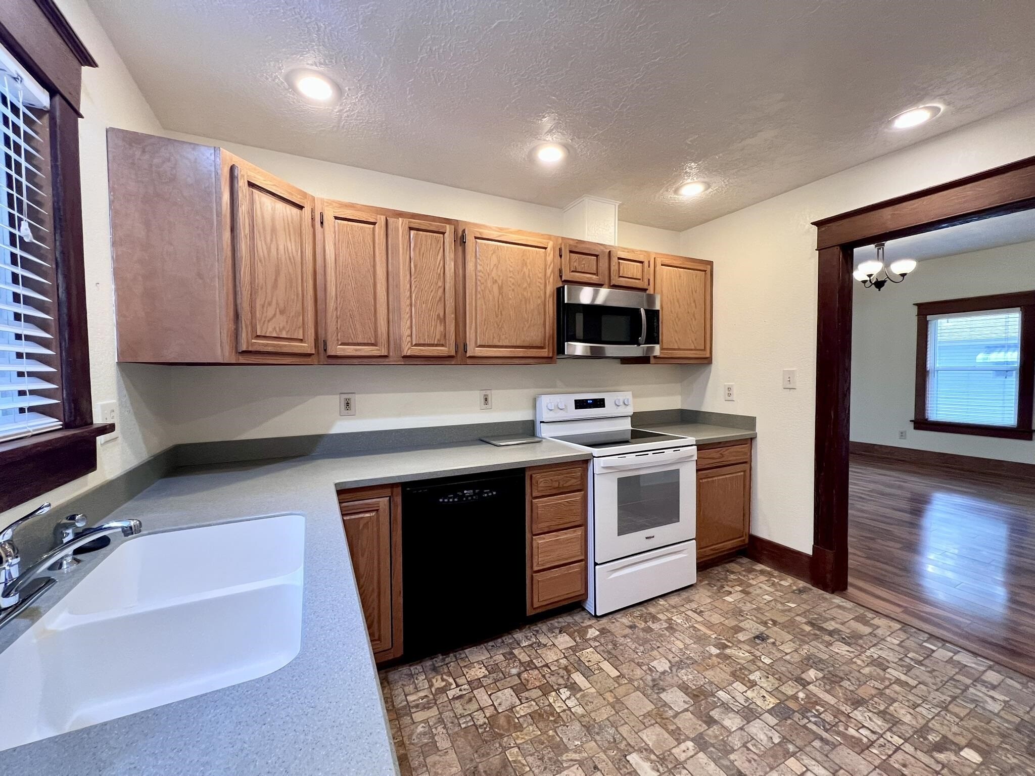 Great Historic Home Right Across from the Golf Course! Come check out this charming, historic home that has great bones and so many updates you will love! Home was updated several years ago with sheetrock, new plumbing, wiring, vinyl windows, stucco exterior, Trex deck, sunroom, and a covered back patio. Newer roof, updated bathroom with a walk-in travertine tile shower! The kitchen features oak cabinets, Corian countertops, tile floors, built-in microwave, and dishwasher. The large family room invites you in with its original wood trim, archway, and area for a formal dining room. This home sits on a large lot â nearly 1/3 acre! Fenced with a full sprinkler system, access off the back alley, and an amazing treehouse! This house has something for everyone!