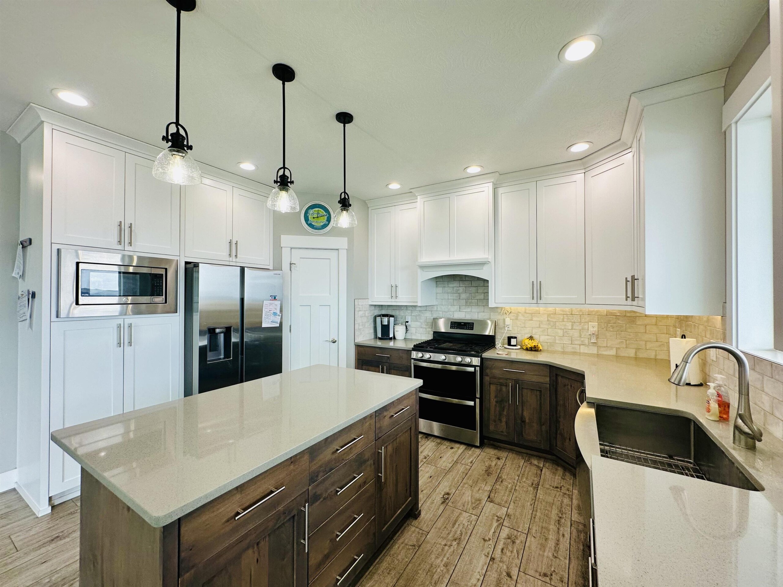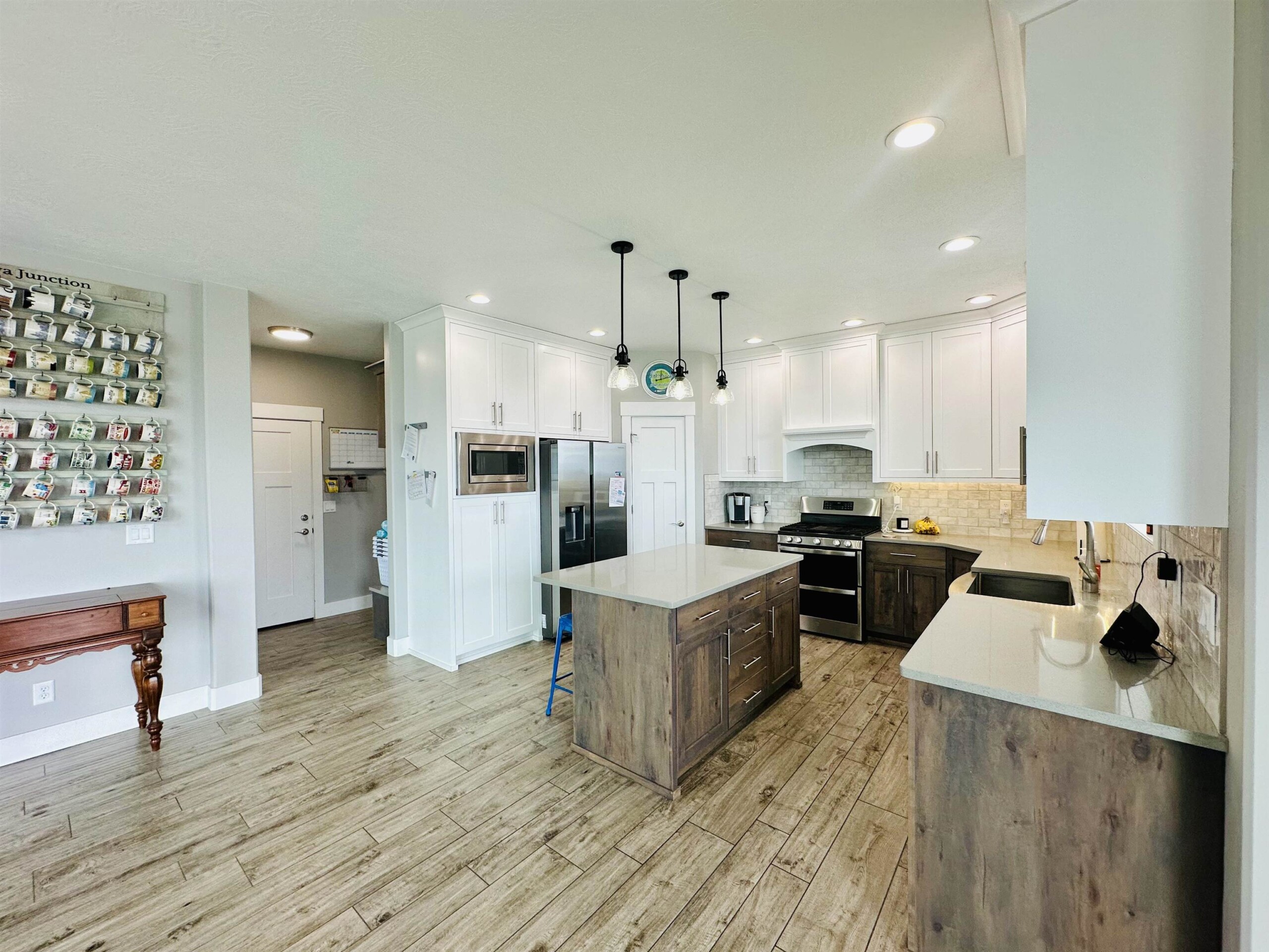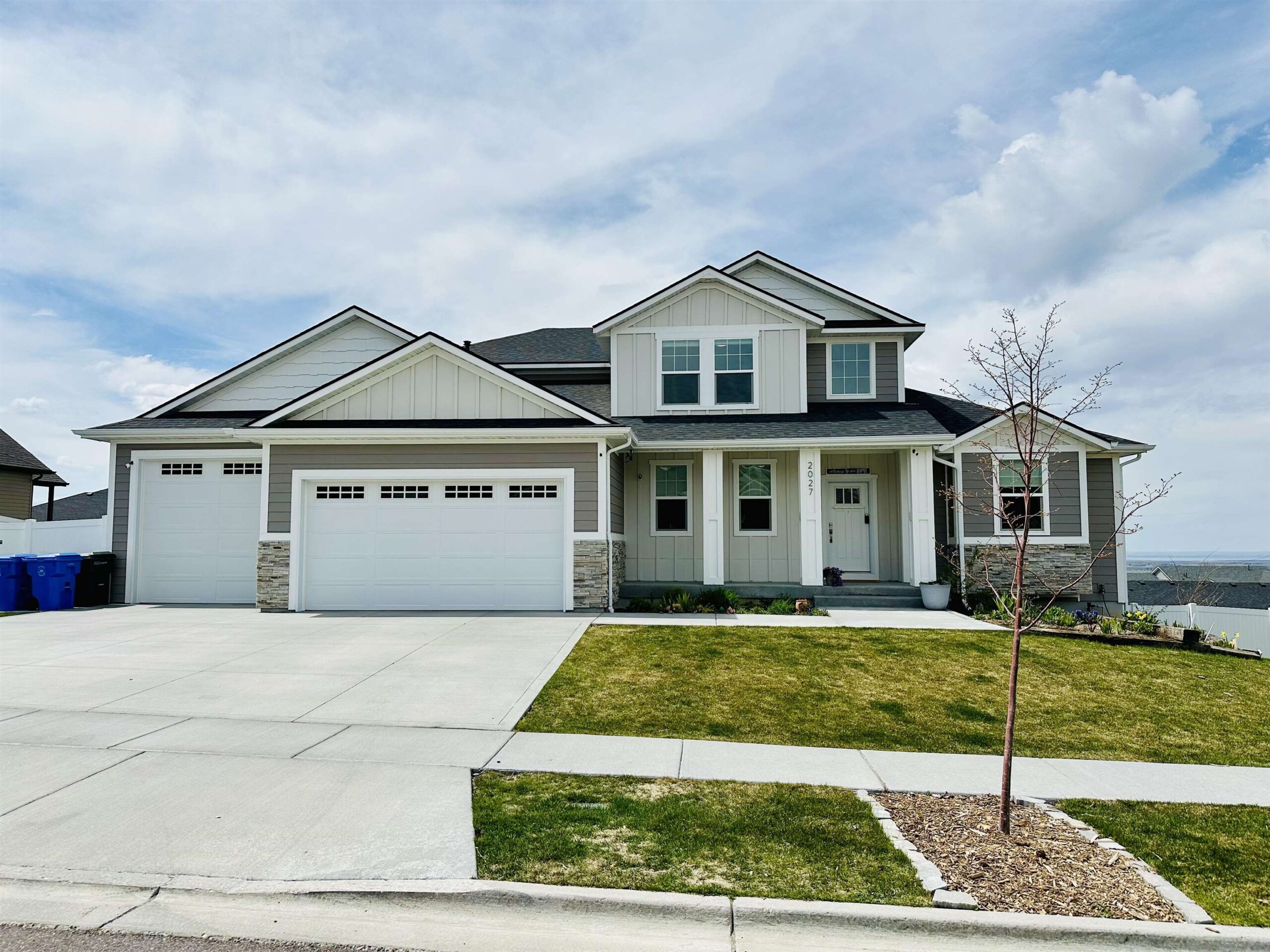 ATTRACTIVE TWO STORY WITH MAIN FLOOR MASTER. Located in the beautiful Crestview Estates Community. Inside and out you will fall in love with this home. This home boasts a large open floor plan which is great for entertaining and a beautiful staircase leading up to three bedrooms and a custom bathroom on the second level. The main floor master bedroom features a decorative tray ceiling with trim and large windows. Master bathroom is sure to impress with the walk in shower, soaker tub, and plenty of space in the walk in closet. Kitchen features quartz countertops, undermount sink, large island/bar, trash can roll out, soft close cabinet doors and drawers. 9′ ceilings in the basement with a finished family room, bathroom, gym and bedroom and potential for another bedroom. The views are stunning, sunset after sunset. Oversized 3 car garage with built in organizers. Great room TV, shed and greenhouse included! You are sure to enjoy the variety of trees including apple and cherry as well as the garden space with raspberries. Come take a look today!