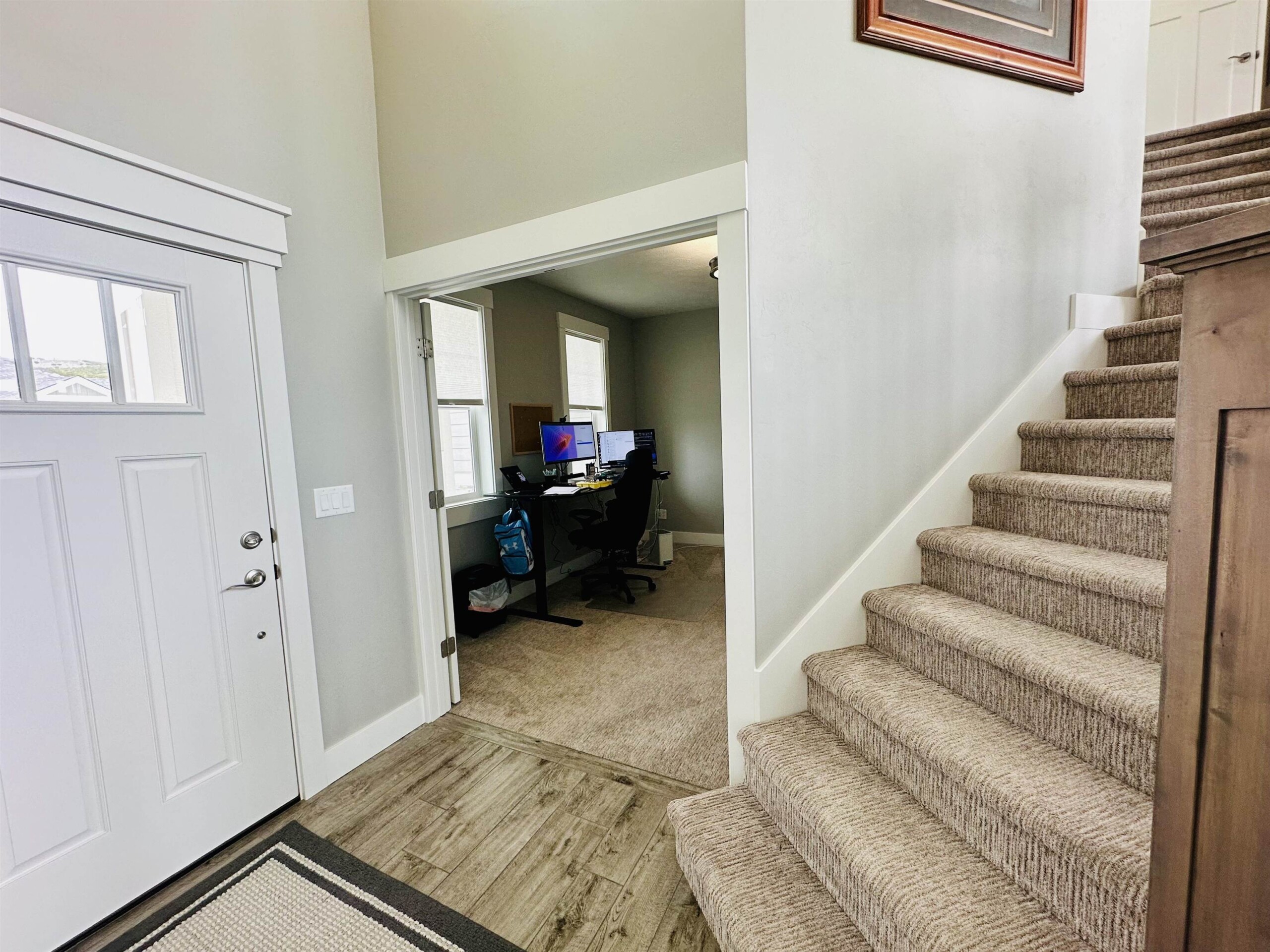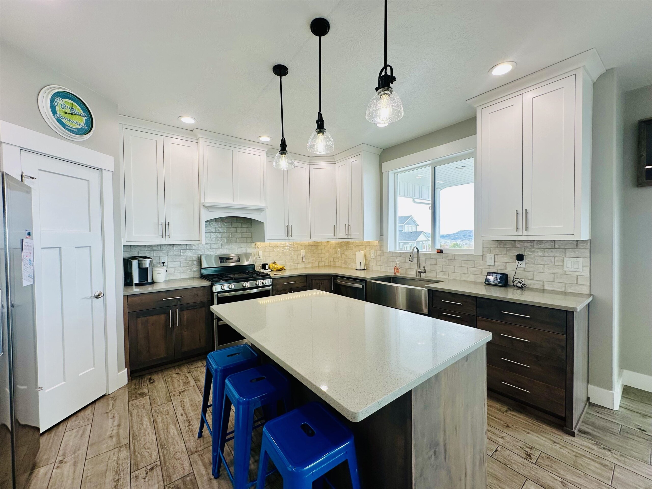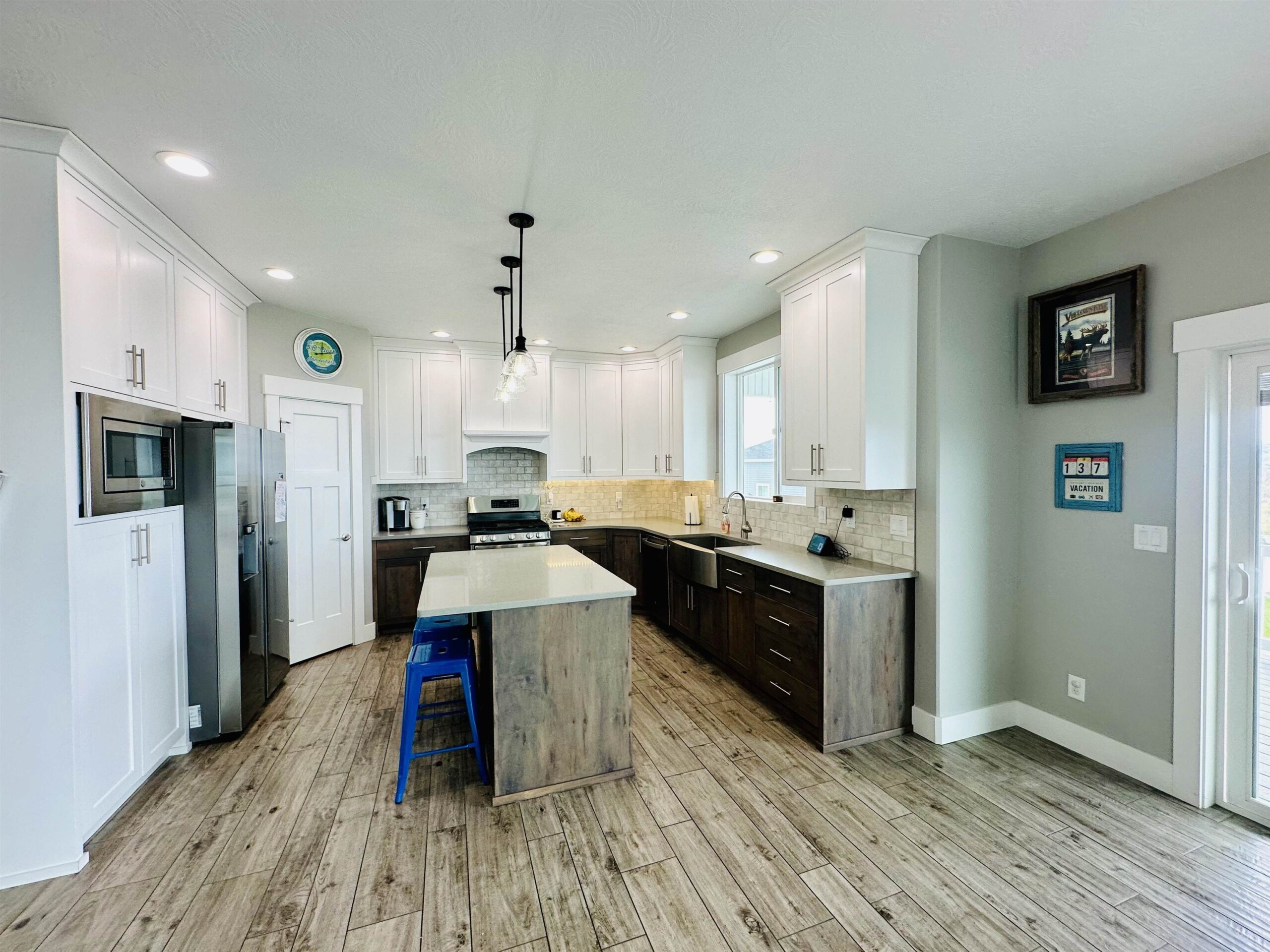 ATTRACTIVE TWO STORY WITH MAIN FLOOR MASTER. Located in the beautiful Crestview Estates Community. Inside and out you will fall in love with this home. This home boasts a large open floor plan which is great for entertaining and a beautiful staircase leading up to three bedrooms and a custom bathroom on the second level. The main floor master bedroom features a decorative tray ceiling with trim and large windows. Master bathroom is sure to impress with the walk in shower, soaker tub, and plenty of space in the walk in closet. Kitchen features quartz countertops, undermount sink, large island/bar, trash can roll out, soft close cabinet doors and drawers. 9′ ceilings in the basement with a finished family room, bathroom, gym and bedroom and potential for another bedroom. The views are stunning, sunset after sunset. Oversized 3 car garage with built in organizers. Great room TV, shed and greenhouse included! You are sure to enjoy the variety of trees including apple and cherry as well as the garden space with raspberries. Come take a look today!