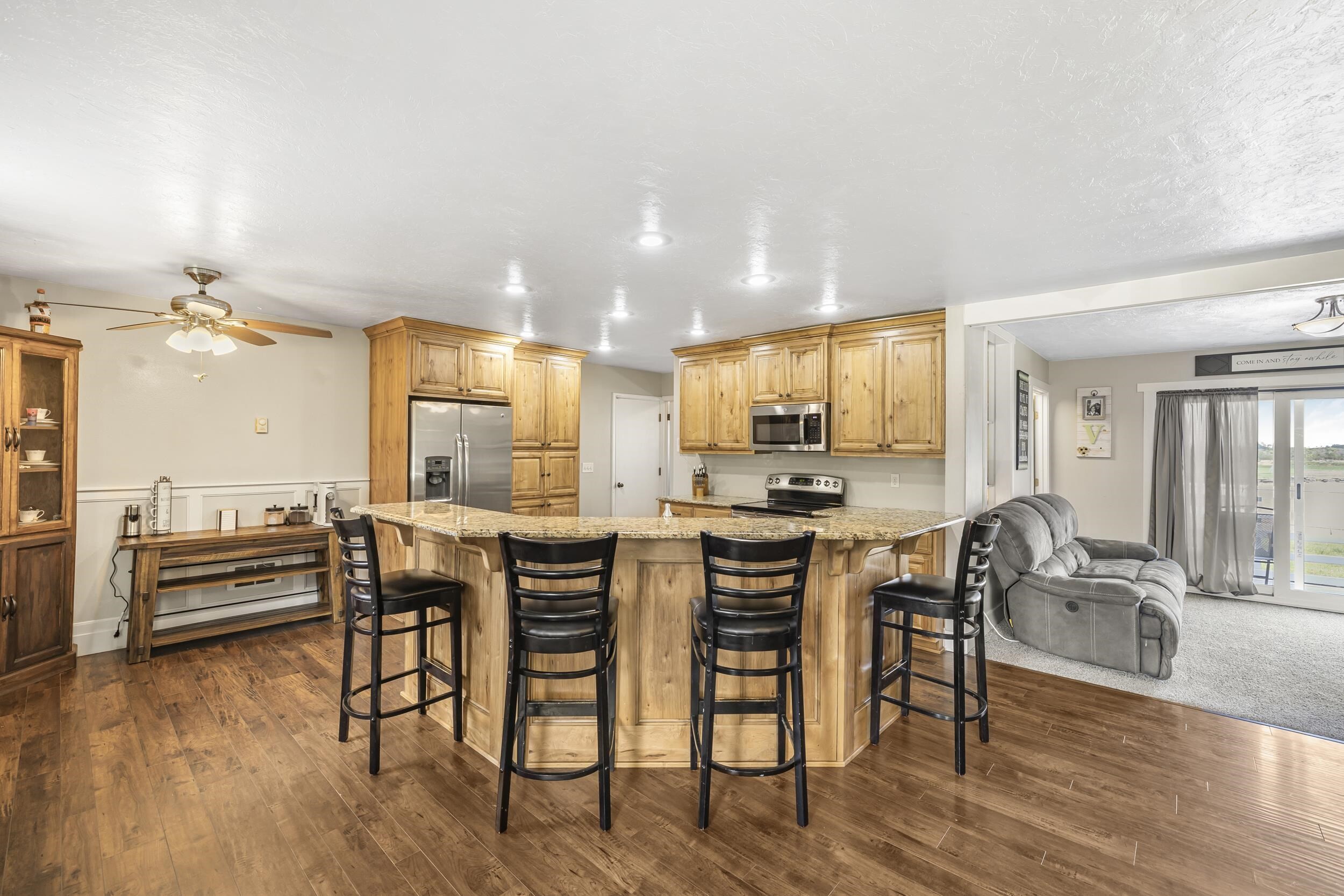 STEP INTO THIS INVITING, OPEN FLOOR PLAN! Tucked away on a dead-end street this home sits on little over half acre. The beautiful kitchen connects seamlessly to the dining and living area with a large kitchen island, granite countertops, custom maple cabinets, pull-out shelving and under counter lighting. NEW mini-split unit was just added for efficient heat/air conditioning. The main floor bathroom also features updated cabinets, double vanity and tile floors. Laundry is available just off the garage OR another laundry room downstairs. The basement has potential for separate living space/apartment with walk-out exterior entrance, small kitchenette, bathroom, laundry, huge storage room, large bedroom and living room. Enjoy evenings on the deck or patio with views of the sunset. Large circular driveway with plenty of room to park your vehicles and toys with underground fence around the perimeter to protect your favorite animals! Don’t miss this one!