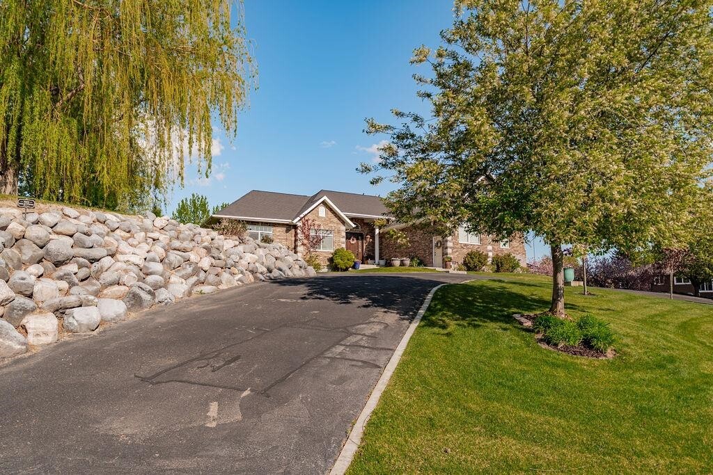 Welcome to this stunning 6,000+ sq ft home on over 4 acres, featuring a 40×60 heated shop ideal for RVs, boats, ATVs, or a home business. Conveniently located near Idaho State University, Portneuf Medical Center, and with easy freeway access, this property combines luxury, privacy, and central living. Inside, enjoy expansive living areas with natural light, soaring ceilings, and a well-appointed kitchen with double ovens, ample counter space, and a large center island with seating for six. A cozy library with a built-in swing provides the perfect retreat, while the large walk-out family room downstairs offers additional space for recreation with easy access to the outdoors. Outside, enjoy beautifully landscaped grounds with rock wall accents, mature trees, and raised garden beds. The property features fruit trees such as peach, apple, apricot, plum, and cherry trees. Additional outdoor amenities include a fire-pit, basketball area, and volleyball net setup. The remaining acreage offers open space and privacy, with room for future expansion. Come see this gorgeous property today!