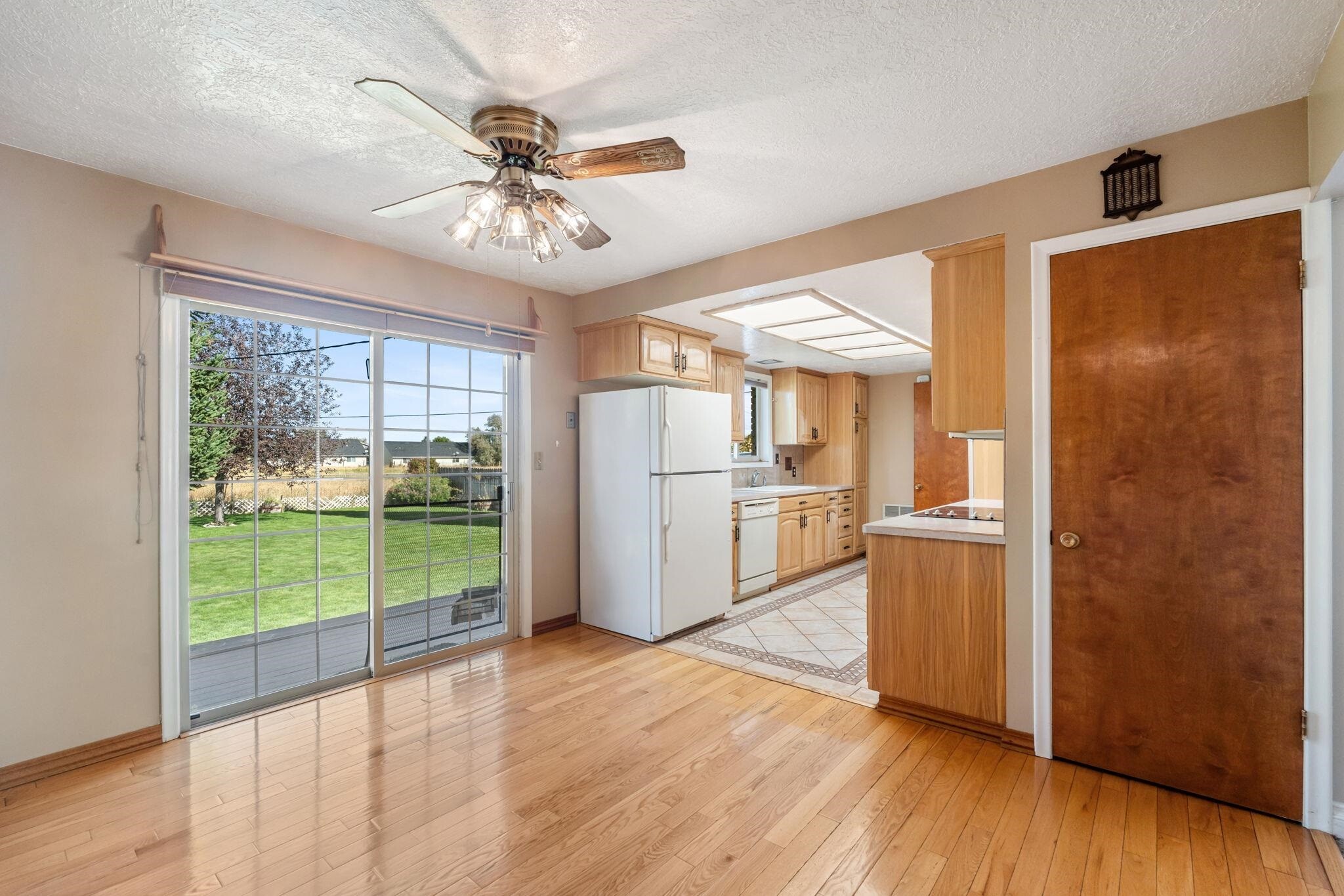 STEP INTO THIS WELL MAINTAINED HOME with 4 bedrooms and 2 bathrooms. This bright home showcases a large living room, gleaming hardwood floors and updated kitchen with tons of cabinets, tile backsplash and tile floor. Topping off the main floor are three spacious bedrooms, full bathroom and dining area with sliding door to the private deck and beautiful backyard. Downstairs you’ll find oversized family room which flows into a game room area. The wood fireplace provides warmth and comfort throughout the home into the 4th bedroom, large laundry room, storage area and bathroom with tiled, walk-in shower. Two sheds, auto-sprinklers, attached garage are just a few of this homes wonderful features! Come take a look!