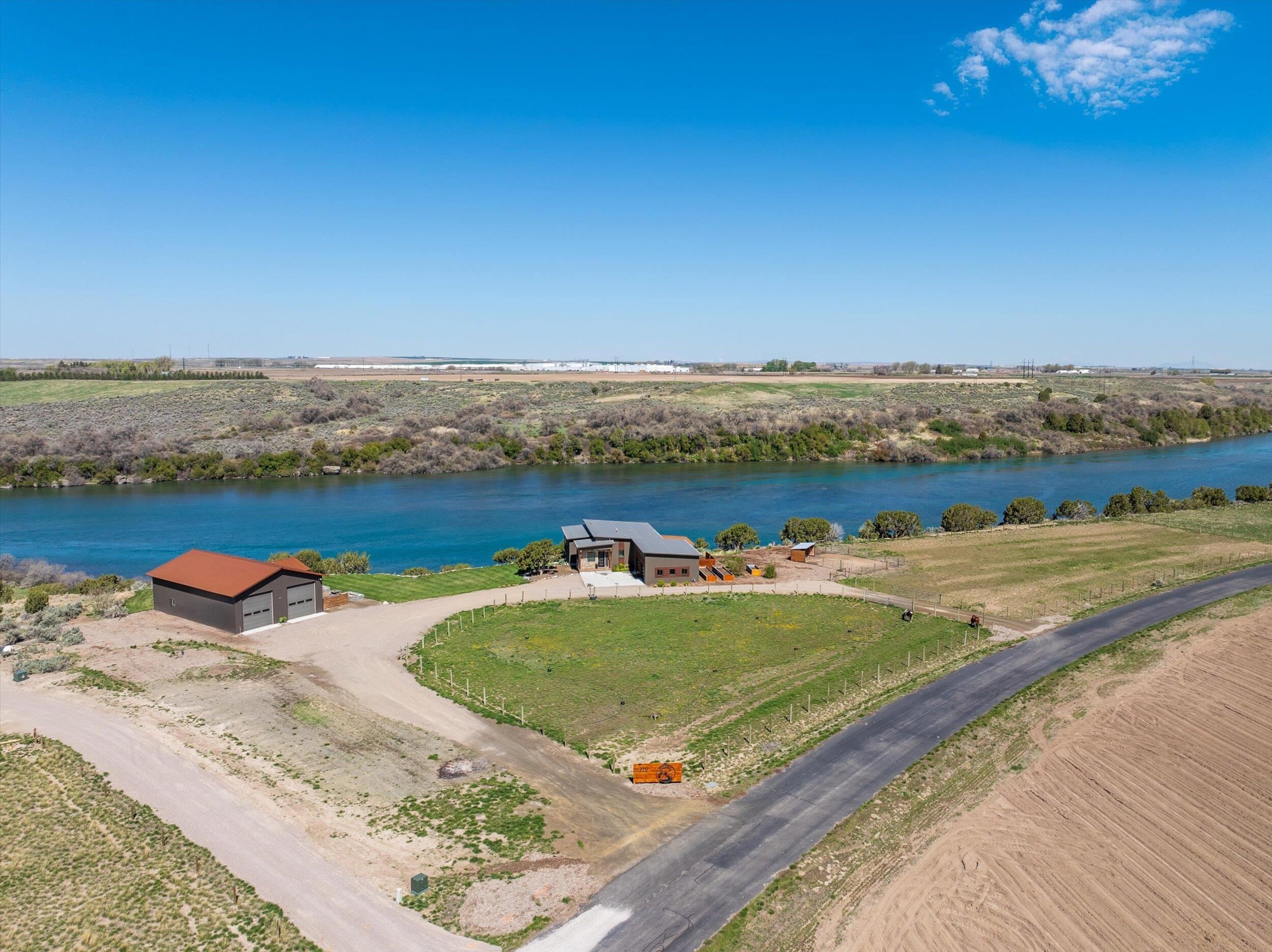 Waterfront retreat nestled along the Snake River offering world-class fly fishing and waterfowl hunting. The property boundary runs right to the waterline. Designed with a mid-century modern aesthetic, it seamlessly blends clean lines, expansive windows, and high-end finishes to create a bright, open and inviting atmosphere. Offered fully furnished featuring 4 beds, 3 baths and 3690 sq ft on nearly 7 acres. Cozy radiant heated floors throughout. Horse-ready with a lean-to, corral and 2 pastures with safe poly fencing. Pressurized irrigation. 2800 sq ft heated shop with 14 ft RV doors, 16 ft walls and bonus guest suite. Guest suite is 20’x20′ 1 bed/1 bath with full kitchen and laundry. Some extras include a RV dump station, two septic tanks, central vac, steam shower and theater room. How about your own putting green? This home has it all! If you are looking for a peaceful oasis that is centrally located to everything Idaho has to offer, this stunning turn-key property is unparalleled. SELLER CARRY @ 3.99%!