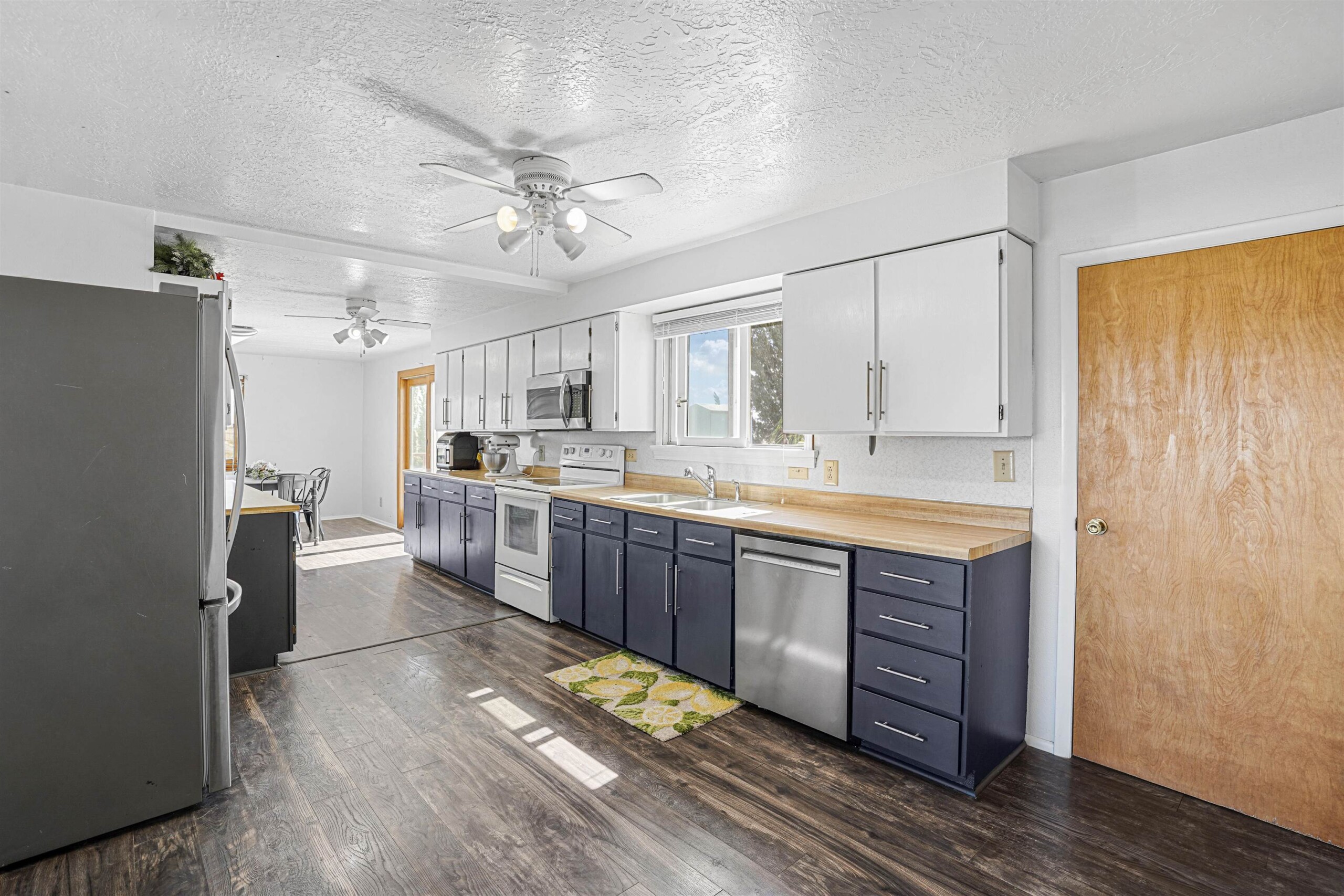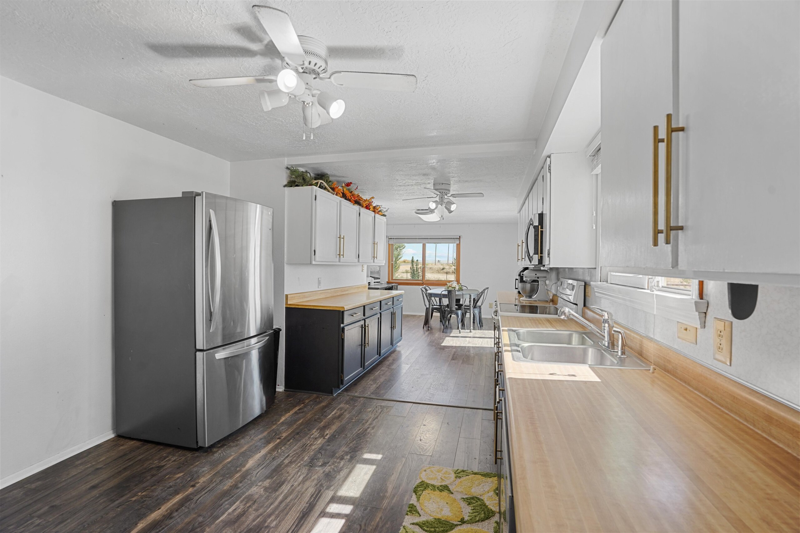 Welcome to this charming 5-bedroom, 2-bathroom country home that perfectly combines peaceful rural living with modern updates and functionality. From the moment you step inside, youâll be greeted with spacious rooms, natural light, and thoughtful finishes that make the home both warm and inviting. The generous floor plan features oversized living areas. The beautifully updated kitchen offers abundant storage, plenty of counter space, and a large dining area perfect for gatherings. The primary suite includes a walk-in closet and en-suite full bath, creating a private retreat. Additional bedrooms are roomy and versatile, ensuring comfort for everyone. A finished basement adds even more living space, making it an excellent option for a recreation room, office, or guest area. Step outside to discover a true outdoor retreat. A large deck overlooks the fully fenced yard, perfect for summer barbecues, evening relaxation, or enjoying your morning coffee. Mature landscaping surrounds the home, with fruit trees, raspberries, a huge strawberry patch, and two raised garden beds, creating a productive and beautiful outdoor space. The property also features a sandbox, playhouse, pool, and storage shedâmaking it a haven for families and outdoor enthusiasts alike. One of the standout features is the new 35×50 heated and insulated shop. Complete with a finished 15×35 loft, entertainment center, and gym flooring, this versatile space is perfect for hobbies, projects, storage, or a home business. Located just outside of town and minutes from the reservoir, this property offers the best of both worldsâpeaceful country living with convenient access to town amenities. The picturesque views and serene surroundings make it easy to unwind and connect with nature. This home truly has it all: updated and spacious living areas, a beautifully landscaped and productive yard, and an exceptional shop that adds tremendous value. Donât miss the opportunity to make this unique property your own!