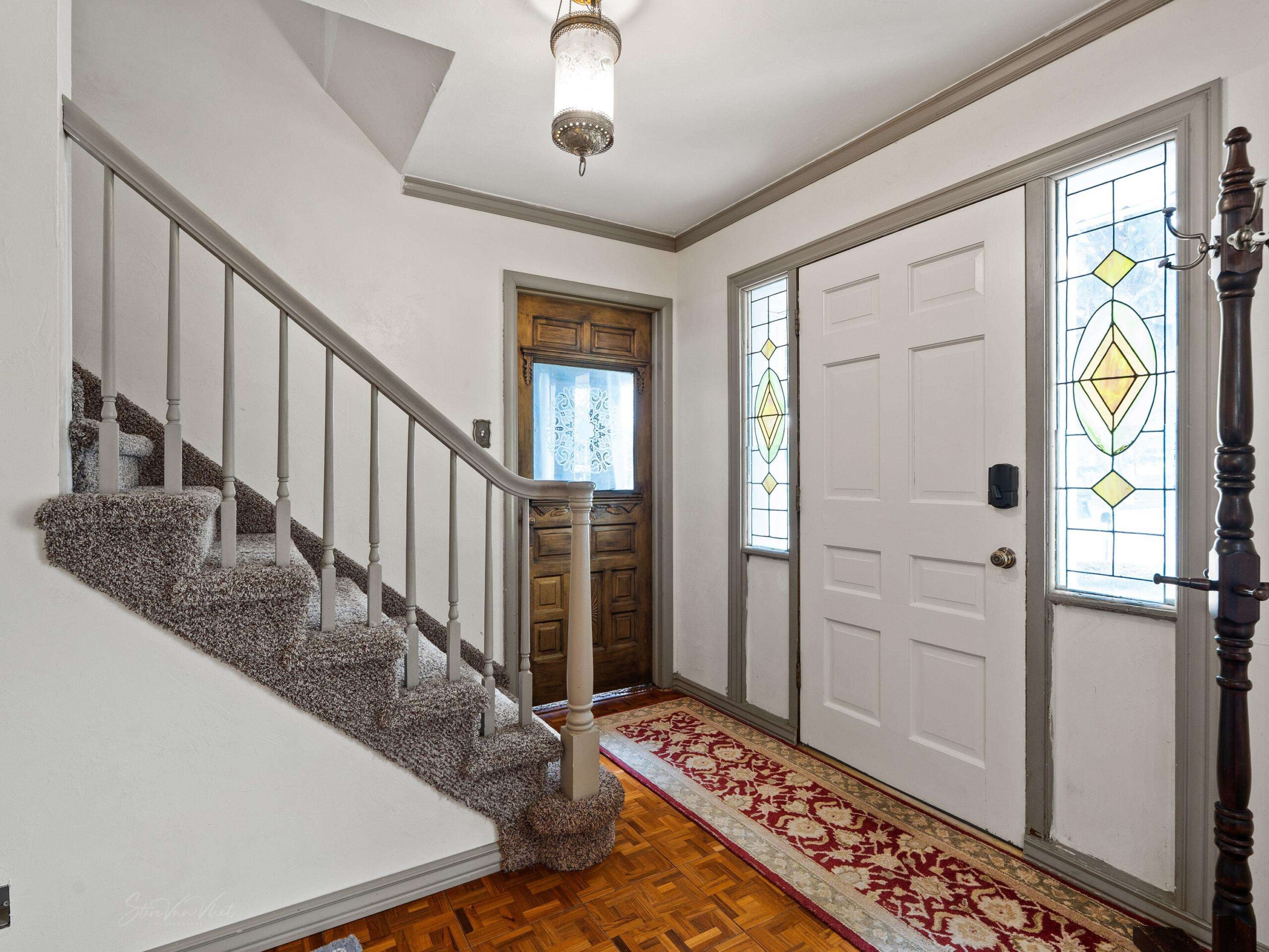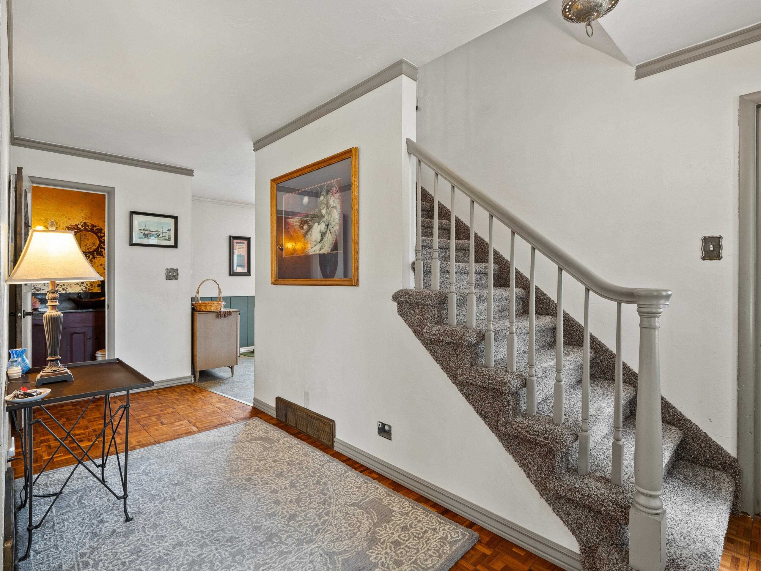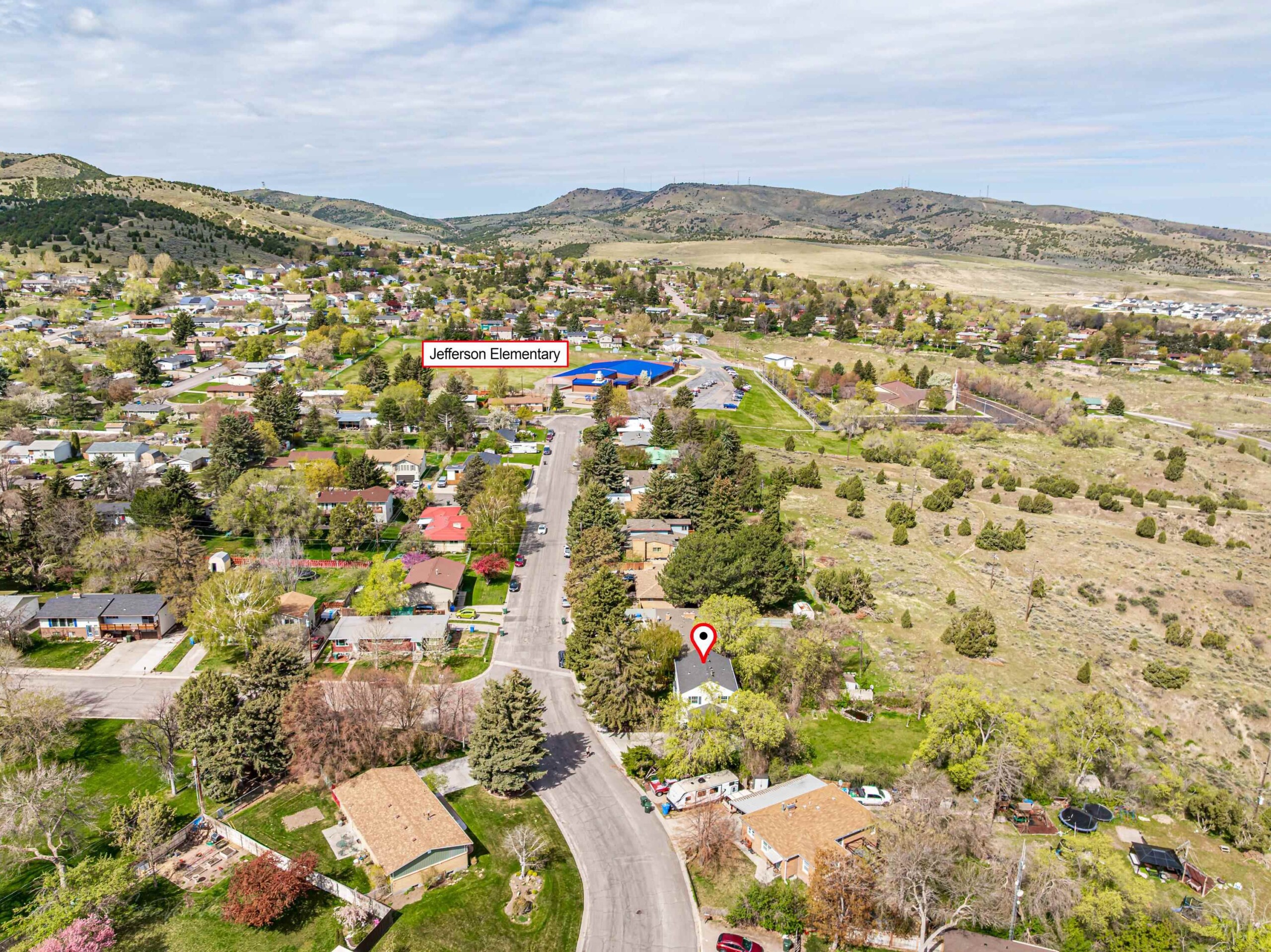 OPEN HOUSE SATURDAY 10/18 FROM 11-1. Classic westside home w/ breathtaking views, .44 AC property provides privacy close to Historic downtown w/ shopping, quaint restaurants, Farmers Market, hiking/biking trails, library & great schools. Enjoy the beautiful views from a large deck (2025), park-like yard, mature trees, raised flower/garden beds, fenced & H20 feature/pond w/ Koi fish (all equipment included). Step inside to the classic charm of this mid-century home, complete w/ parquet hardwood floors (refinished 2022), original light fixtures, fireplace w/marble hearth, & stained-glass windows. Main floor has large LR w/ bay window & sliding door to deck, ½ BA w/ the authentic gold wallpaper, renovated granite countertop, hammered copper sink (2024), BR (could be FR) w/bay window seat & built in bookcase, eat-in kitchen w/ great VIEWS, new tiled backsplash, all appliances included (dishwasher new 2022). Upper level w/ 4 BR upstairs w/2 BA & linen closet. Multiple use walkout basement, FR w/bar & fireplace, huge storage area & W/D included. Located in a quiet neighborhood