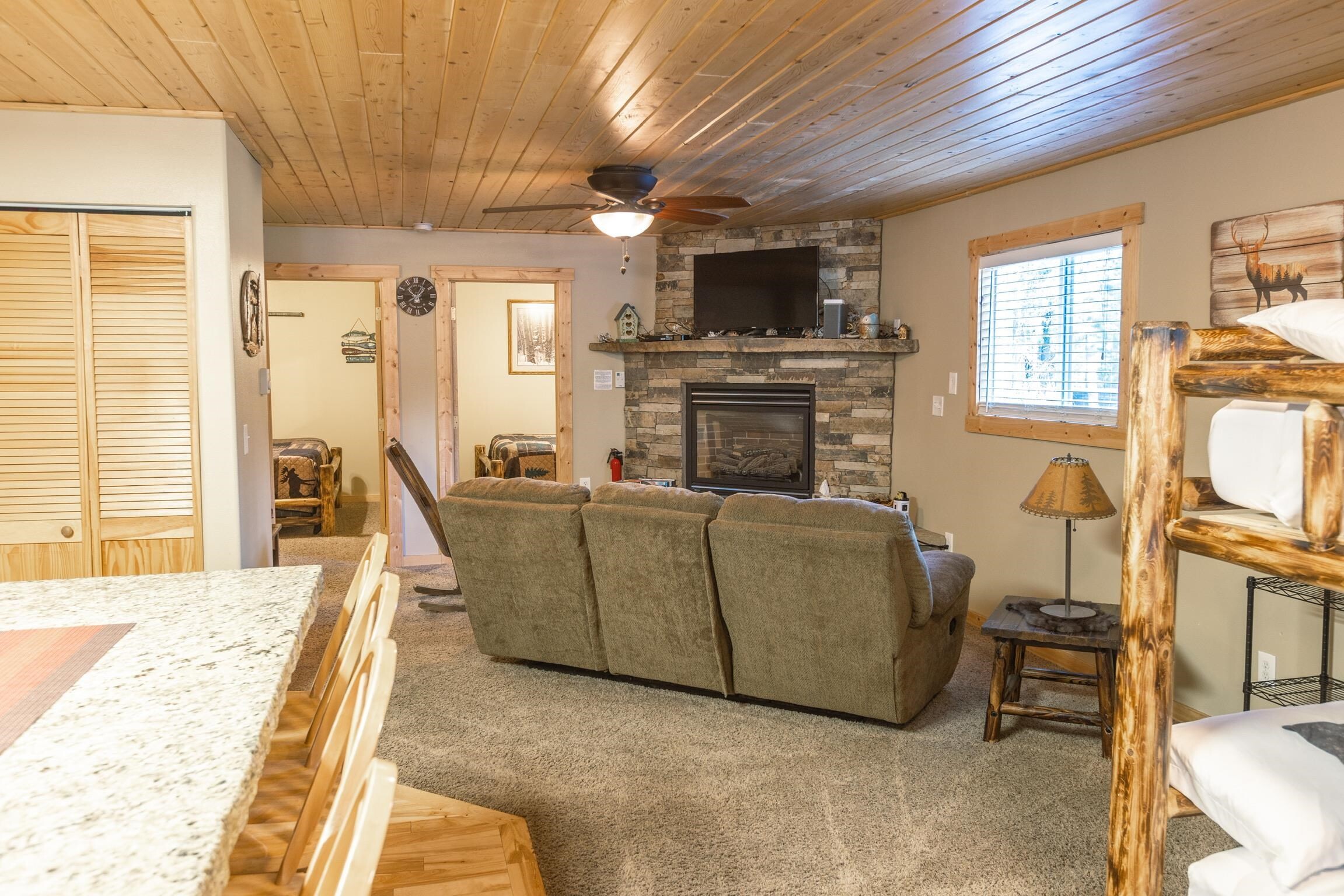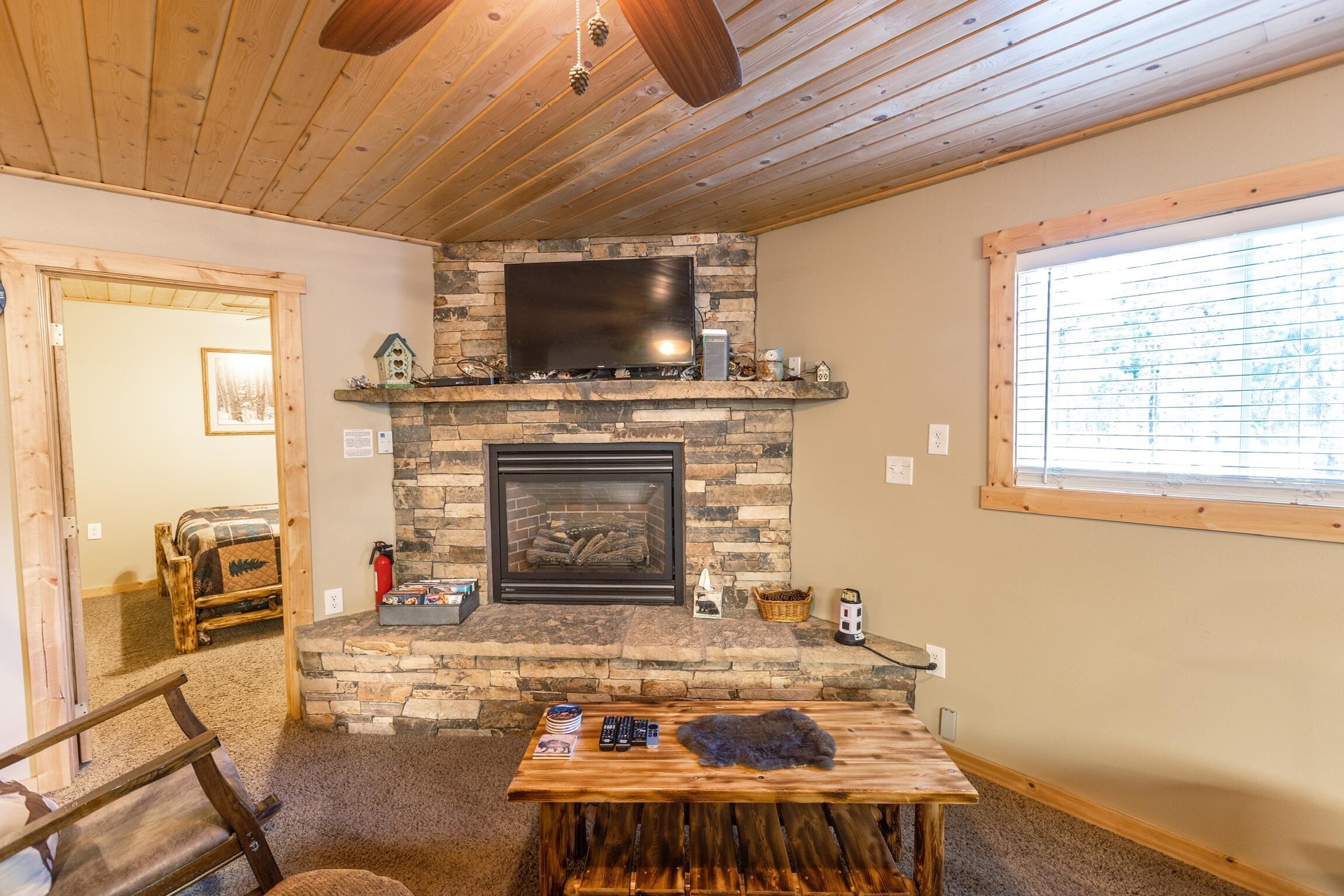 FULLY FURNISHED CABIN ON A WOODED CORNER LOT WITH NIGHTLY RENTALS ALLOWED! Wonderful location near Mack’s Inn with walking distance of Henry’s Fork where you can fish, float, and just enjoy the wildlife. You’ll enjoy excellent year-round access and a circular driveway that boasts plenty of parking. In addition, the large storage shed doubles as a single stall garage and the RV hookups/pad is perfect for those with a trailer. The interior is updated with granite countertops, hardwood floors, tile, and custom finishes throughout. The 1/2 acre lot boasts towering lodgepole pine trees and plenty of space for the fire pit and hammocks. You’ll appreciate the access to hundreds of miles of recreational trails right at your fingertips. Wonderful cabin and property to enjoy!