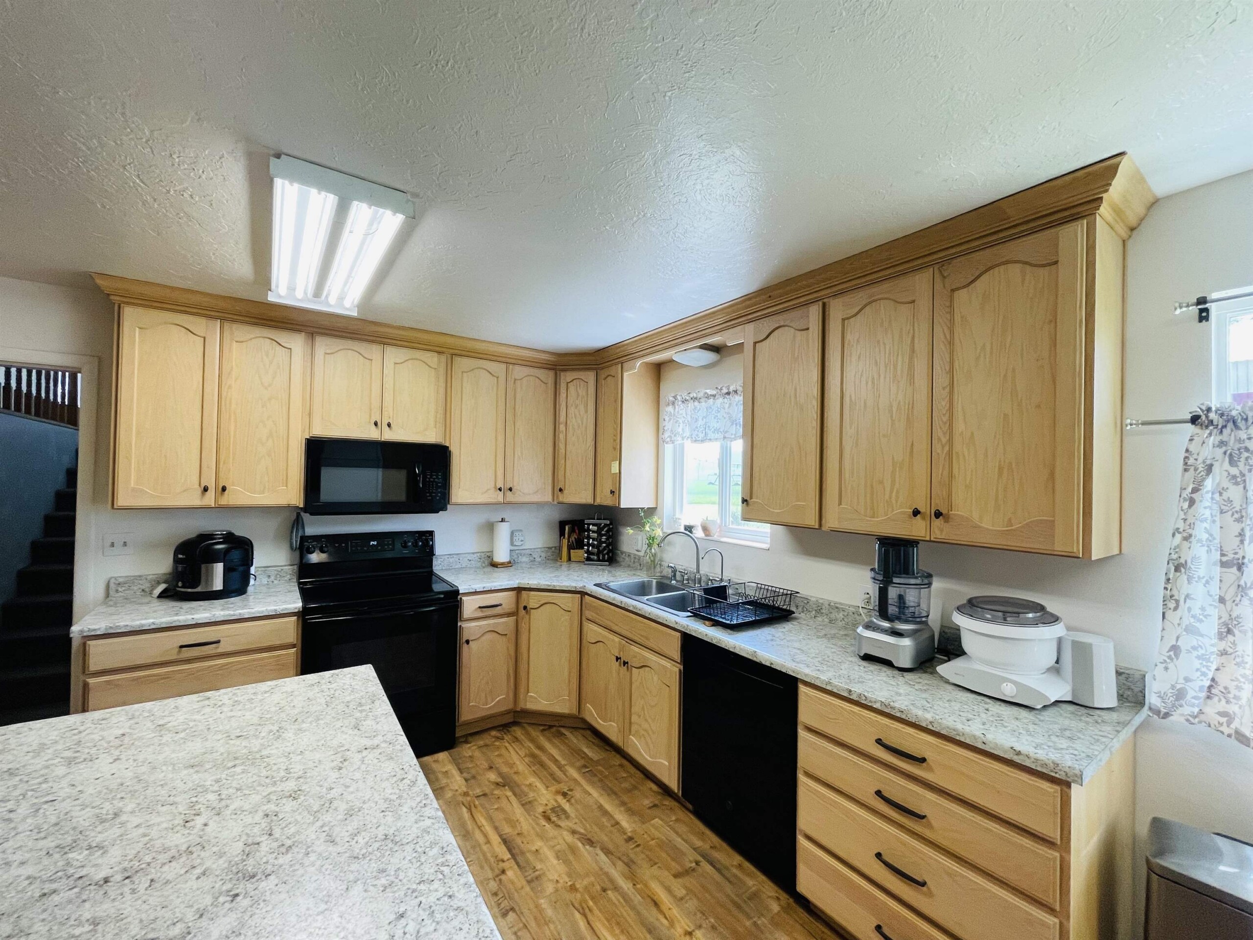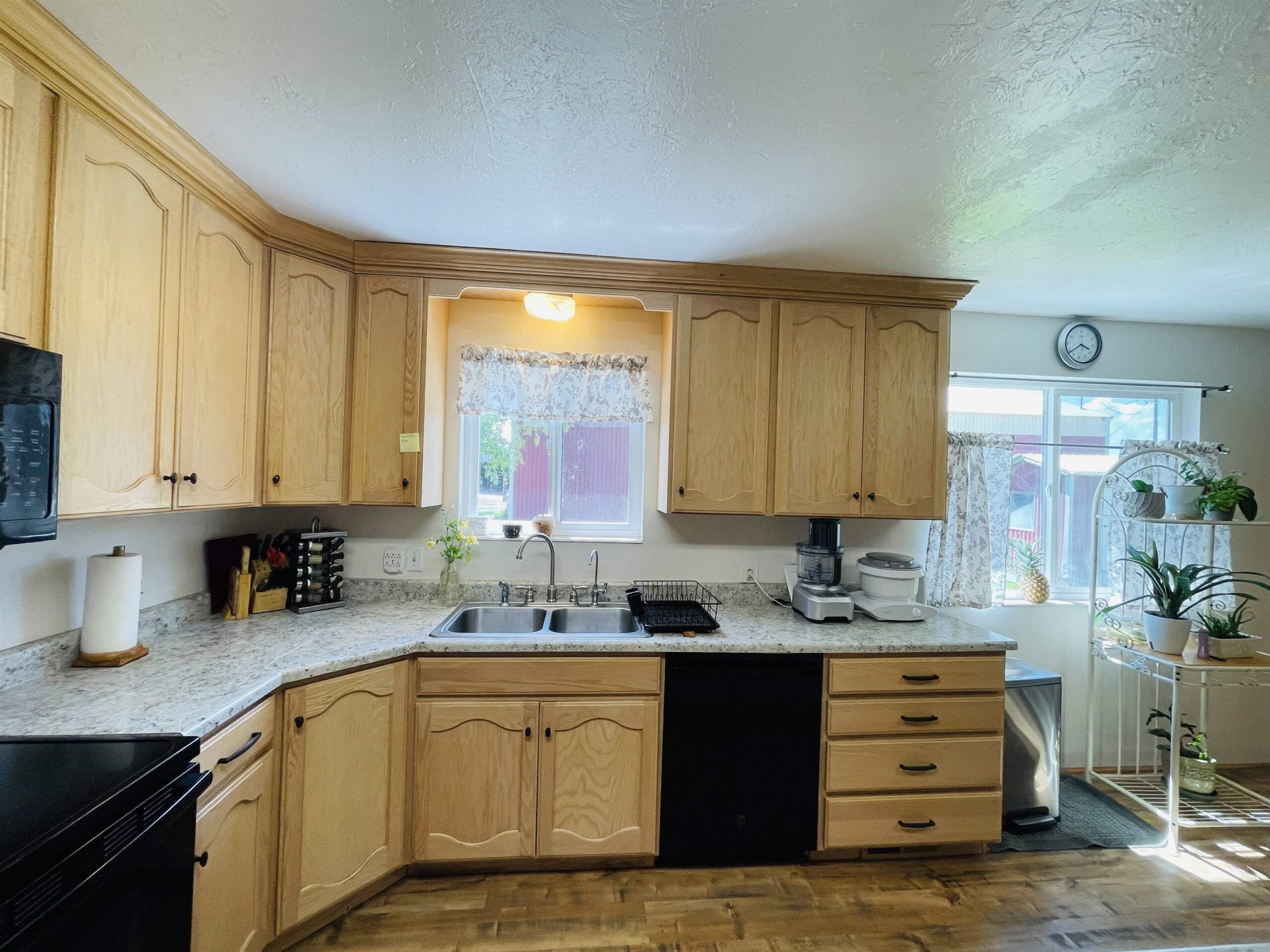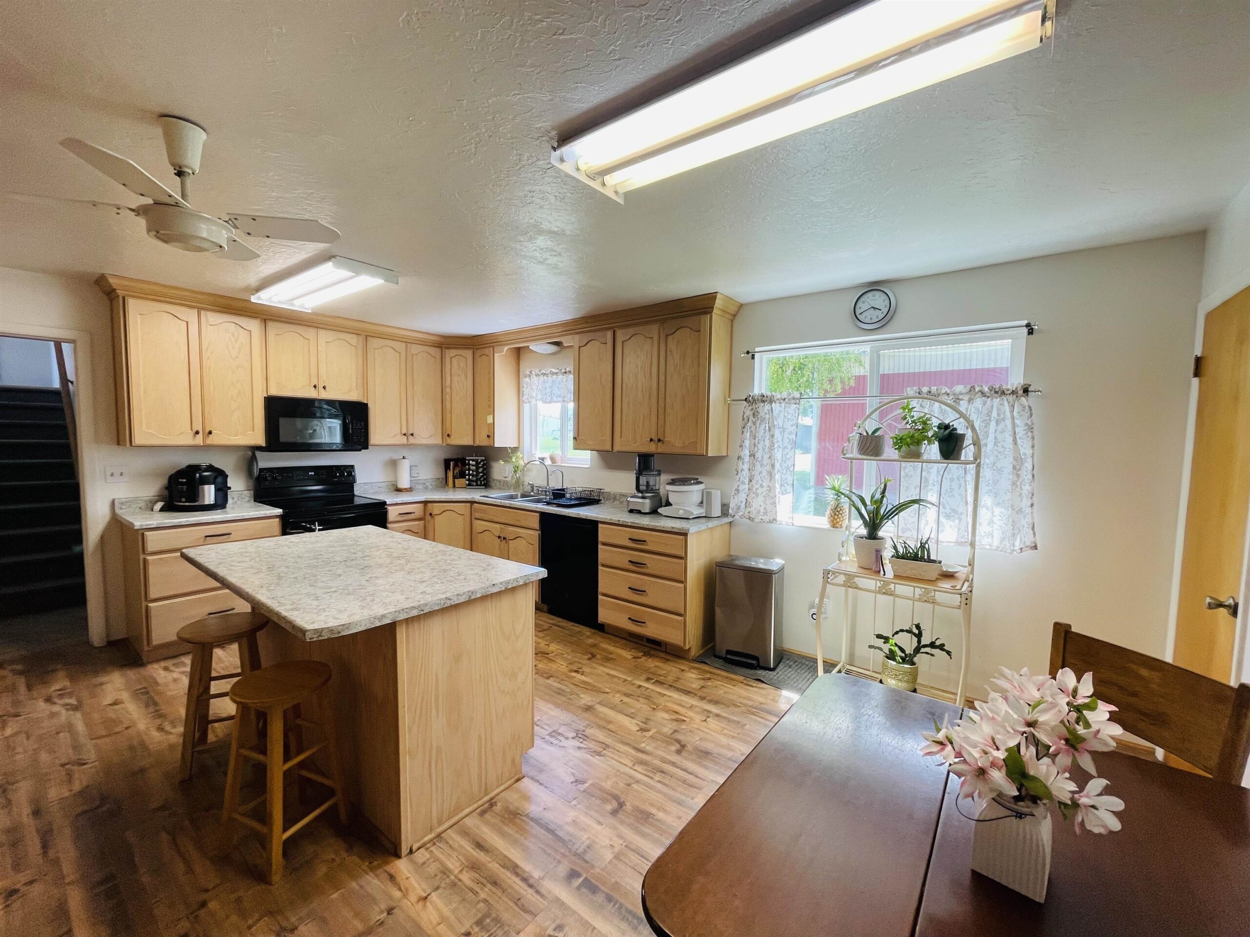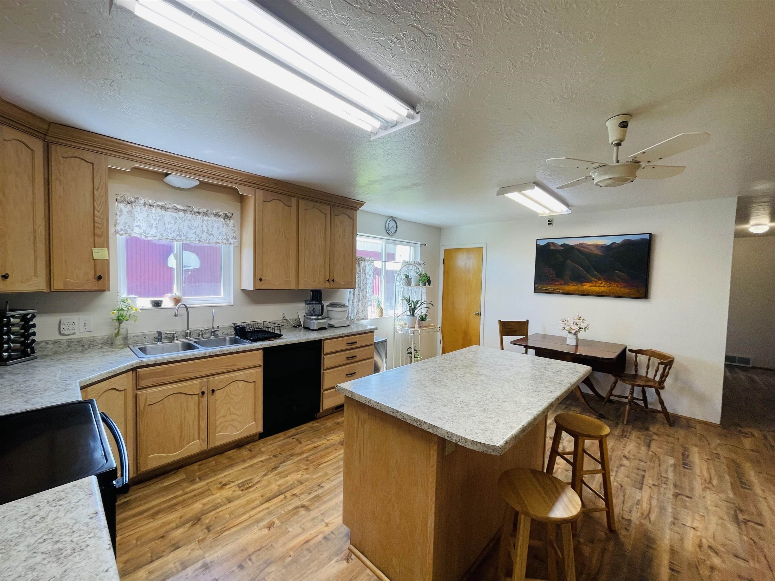 Charming Multi-Use Property with Shop, Wood Shop, and great home on 0.91 of an acre With WATER RIGHTS! Welcome to this unique property that combines functionality, charm, and convenience in one incredible package! This versatile property offers some great updates, shop spaces, and plenty of room to work and play. Whether youâre a hobbyist, artist, or just want some country living, this place has it all! Home Features: Metal roof for durability and low maintenance, Updated kitchen, Some new flooring, Main floor laundry with storage. Upper level includes a spacious great room (perfect for a painting studio!), 1 bedroom, and a private deck area with beautiful views. Basement offers 2 additional bedrooms, 1 bathroom, a spacious family room with gas fireplace, storage area, and separate exterior exit, On-demand water heater, and updated gas furnace. Shop & Wood Shop Highlights: Large shop with air compressor, hoist, wall storage, wood stove, work bench, and power Separate wood shop with its own work bench, storage, and power. This property is perfect for those who want space to create, build, or simply enjoy the peace of a well-equipped home with all the extras. Donât miss your chance to own this gem â schedule your showing today!!