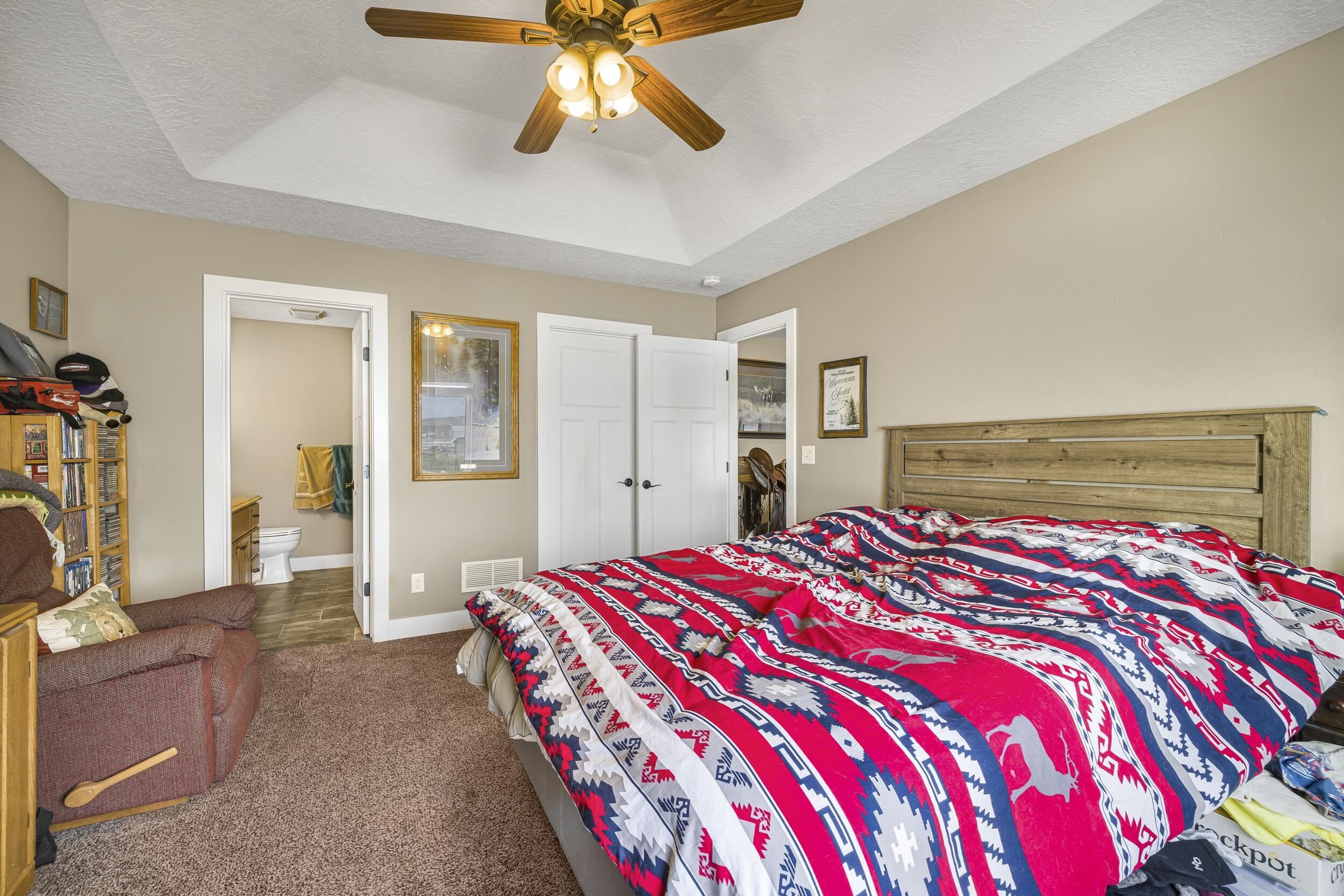 Extremely well-built home by a reputable builder! This spacious property offers 4 bedrooms, 3 full bathrooms, and a dedicated office. You’ll love the open-concept living area, complete with granite countertops and beautifully tiled bathrooms throughout. The primary suite features a large walk-in closet with built-ins and a walk-in shower in the ensuite bathroom. The laundry room is conveniently located on the main level. Outside, the home includes a full sprinkler system and a fully fenced yard. Plus, it’s located less than a mile from a golf course. Seller will pay for a 1% interest rate buy down for the first 2 years, helping make this home even more affordable.