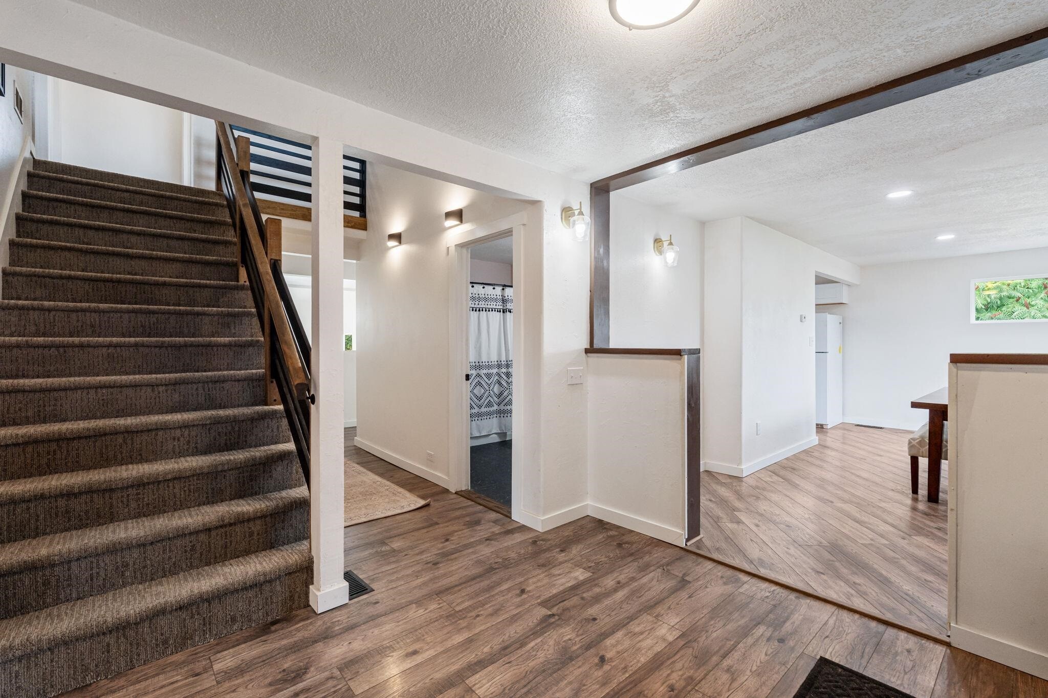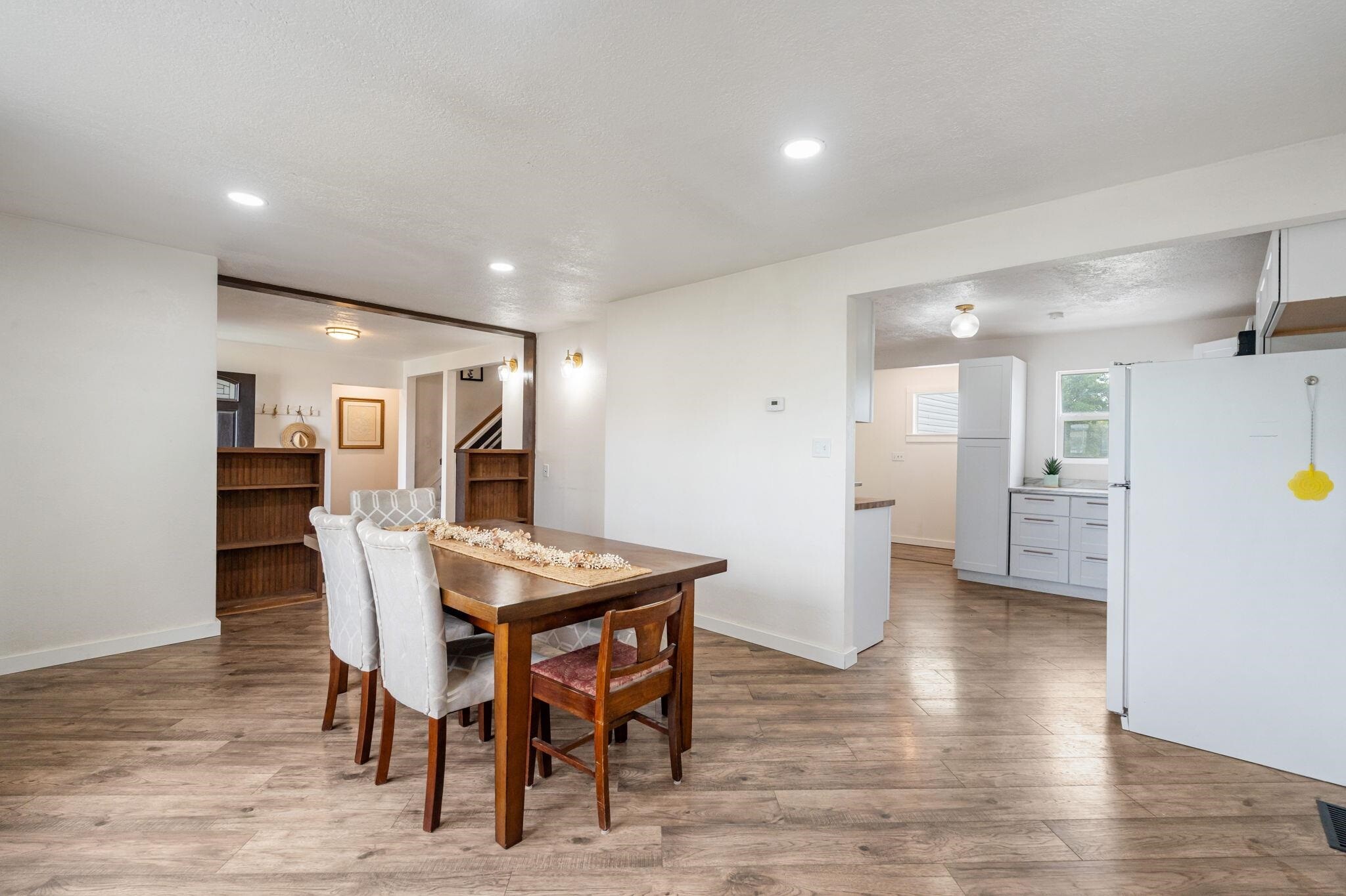 This recently remodeled beauty, with many recent upgrades, is a must see! The main floor primary bedroom, complete with walk in closet and large en suite bathroom is a dream. The main floor laundry, right off the entryway is an added convenient feature for anyone. The kitchen, located right off the dining area, comes complete with appliances that include an induction stove, fridge, microwave, and dishwasher. Added under cabinet lighting, makes for a nice ambiance. The main floor living room, with ample space for entertaining, includes vaulted ceilings, large windows that look out to the backyard and its fruit trees, and a wood burning stove, perfect for those chilly days. Make your way up the beautifully designed staircase, that leads to the loft like family room, overlooking NOP park and the stunning Pocatello sunsets. The upstairs space is completed with its 3 spacious bedrooms. The unfinished basement, with some built in storage, is ready for the next owners to complete its space. Call your favorite realtor today, to schedule a showing.