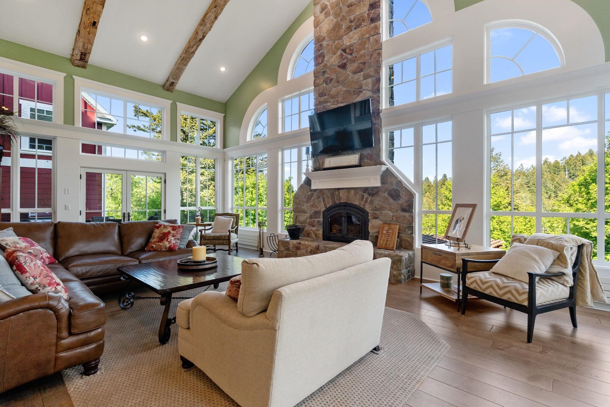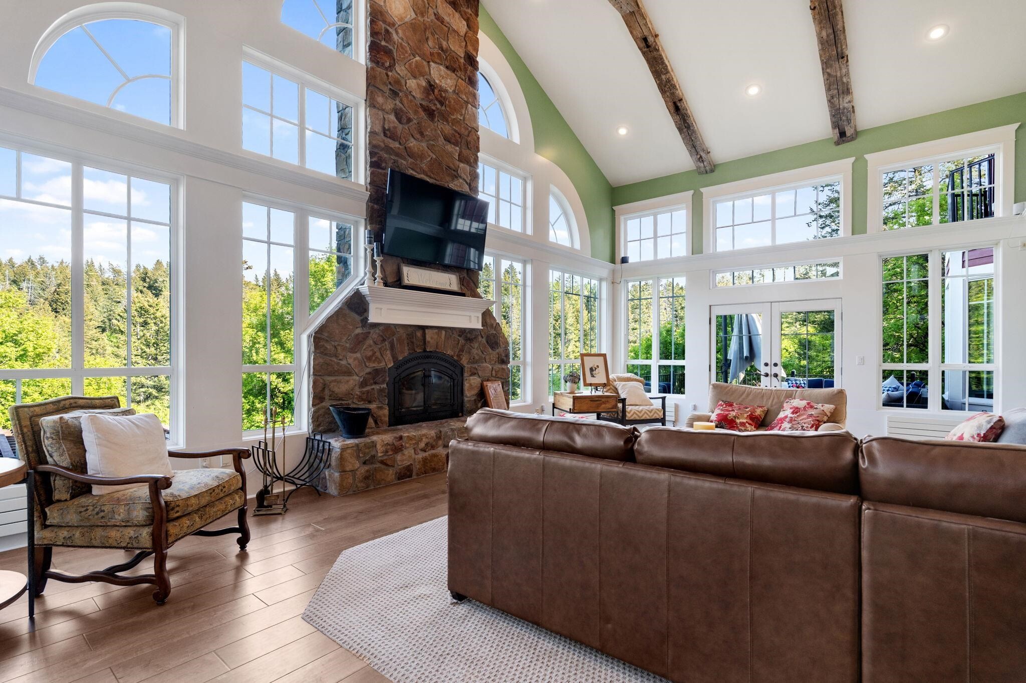 Experience Top of the World Living on 10 acres of a secluded 40-acre cul-de-sac. A true work of art, extraordinary blend of modern luxury and natural beauty. This once-in-a-lifetime property boasts over 8,000 square feet of thoughtfully designed living space, featuring 7 bedrooms and 4 bathrooms. Surrounded by mature woods, the home offers unmatched privacy, peace, and panoramic views that soothe and inspire. Light fills the interior from every direction, enhancing the sleek, modern design. Step outside to expansive open decks and elegant Juliet balconies, perfect for relaxing or entertaining. A paved, tree-canopied driveway leads you home to a setting where every day feels like a getaway. This is solitude, space, and splendor redefined. A 16 kW propane generator provides seamless backup power, while 56 solar panels produce more than ample energy for sustainable living. Floor-to-ceiling windows and soaring ceilings invite panoramic woodland vistas indoors; expansive decks and balconies bring nature even closer. Four versatile heat sources include, wood-fired boiler, propane boiler for radiant floors, high-efficiency forced air, and a classic wood stove ensure cozy warmth in every season. Lets not forget the 24X24 detached shop for your extras!