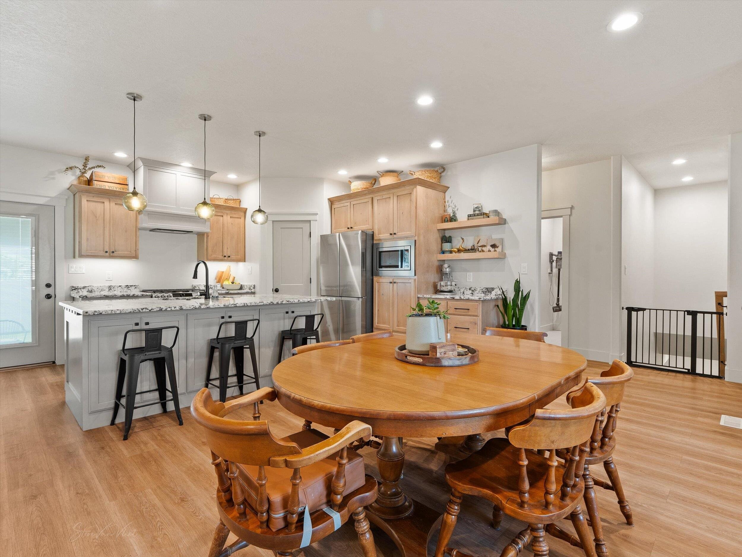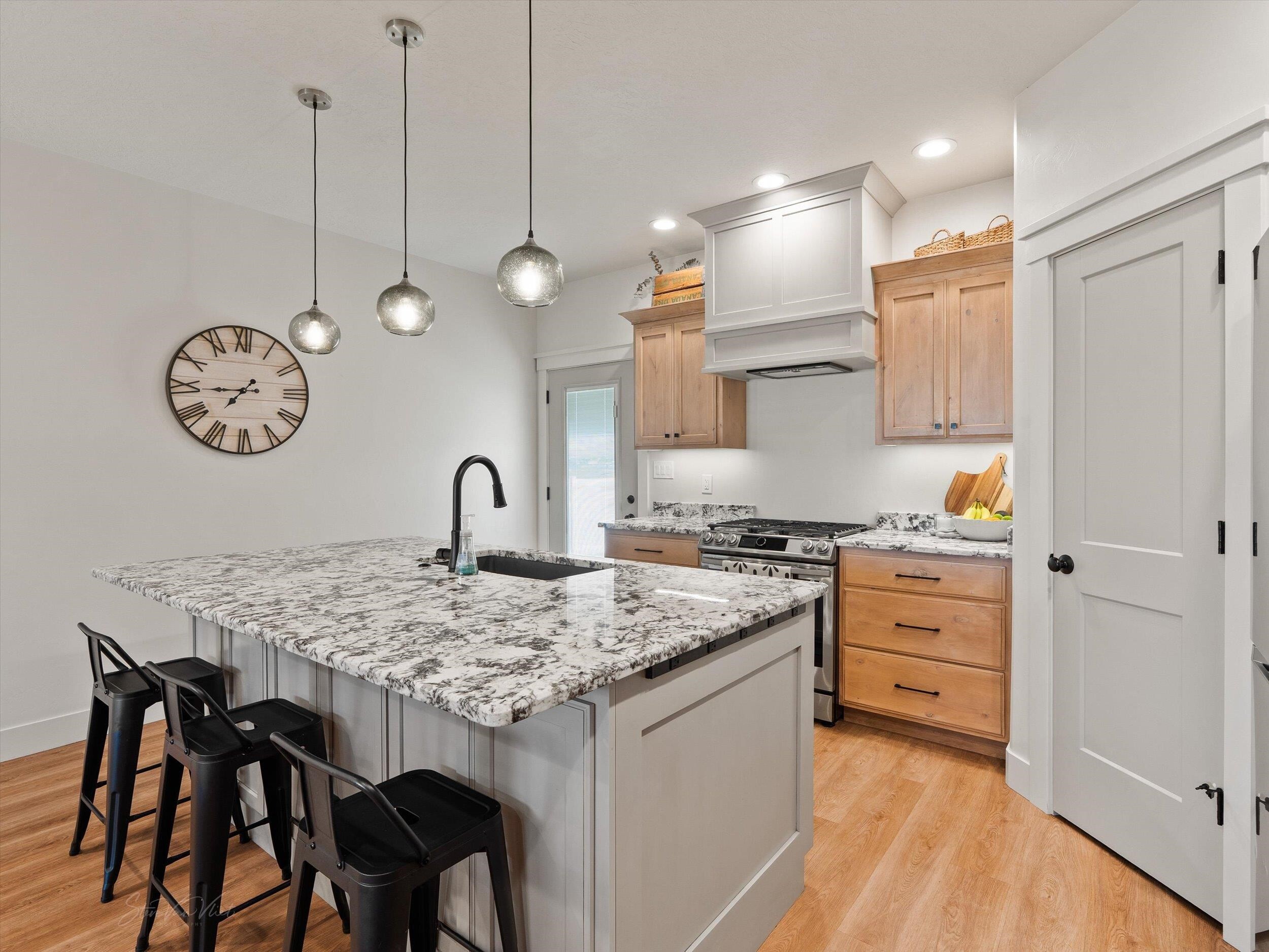 Welcome to this stunning home that feels like new and is absolutely loaded with thoughtful upgrades and custom touches throughout. Enjoy the open concept floor plan featuring a kitchen with sleek modern cabinetry, granite countertops, and a spacious layout that flows seamlessly into the dining and living areas. The main level offers a well-designed layout with the master suite tucked away on one side of the home, providing privacy and separation from the two additional bedrooms. The fully finished basement includes two additional bedrooms, a full bathroom, a large family room, and a versatile flex room that can easily serve as an office, home gym, or playroom. Outdoor living is just as impressive with one of the only covered patios on the streetâperfect for relaxing, dining, or entertaining year-round. Car enthusiasts and outdoor lovers will appreciate the oversized two-car garage with an oversized door, as well as the RV pad for additional parking. Located close to shopping, dining, and everyday conveniences, this home truly combines modern comfort, functionality, and style. Donât miss the chance to make it yours!